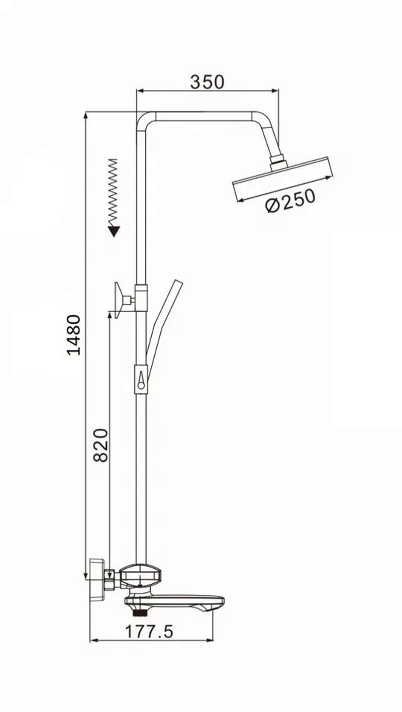 Размер верхнего душа, мм