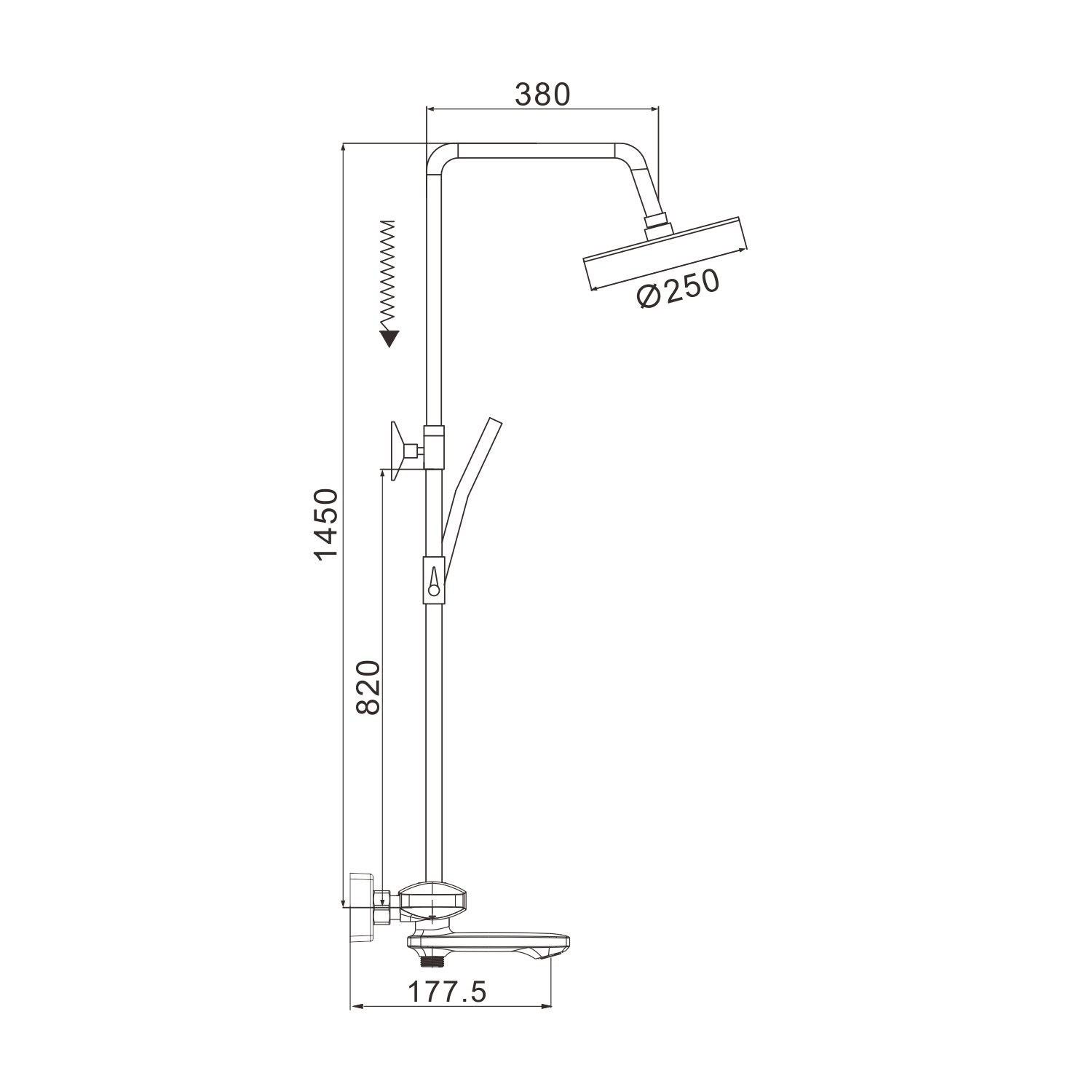 Размер верхнего душа, мм