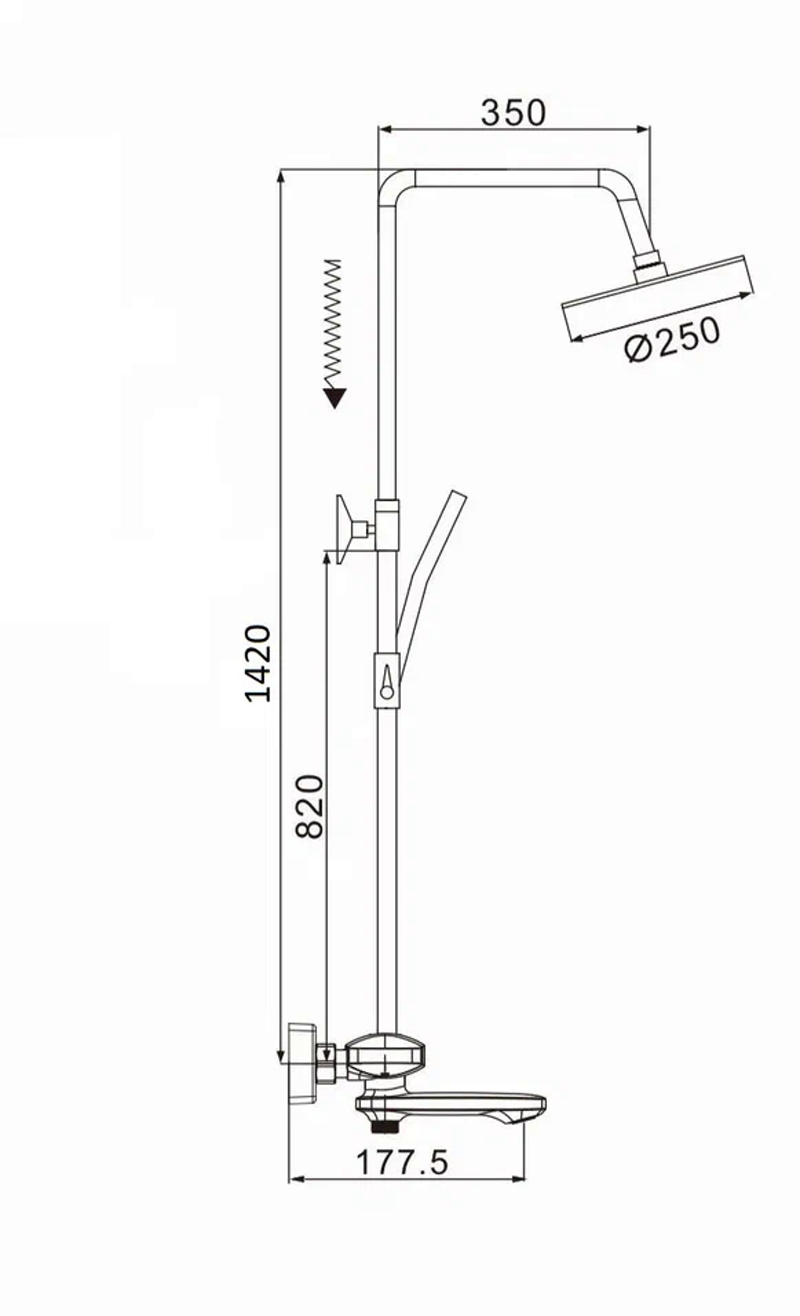 Размер верхнего душа, мм