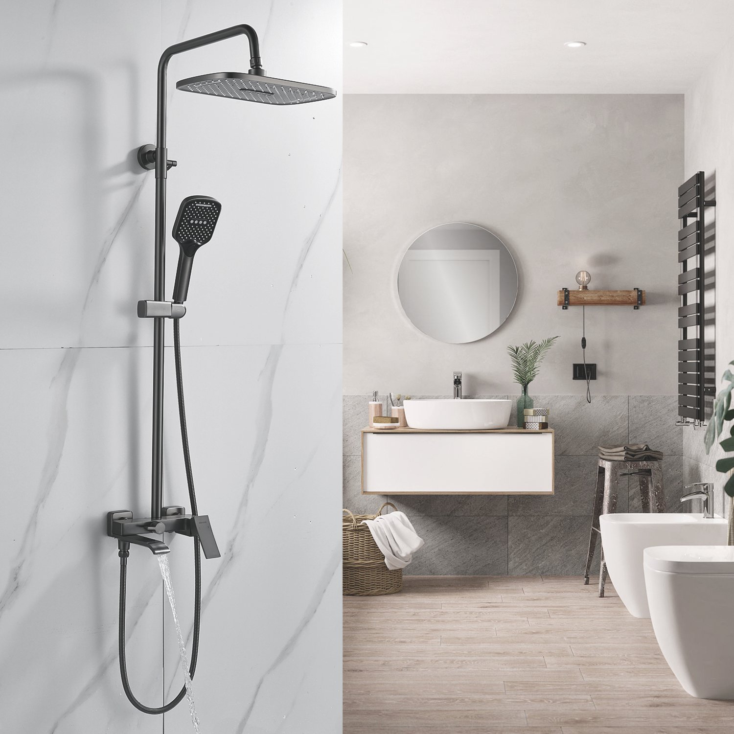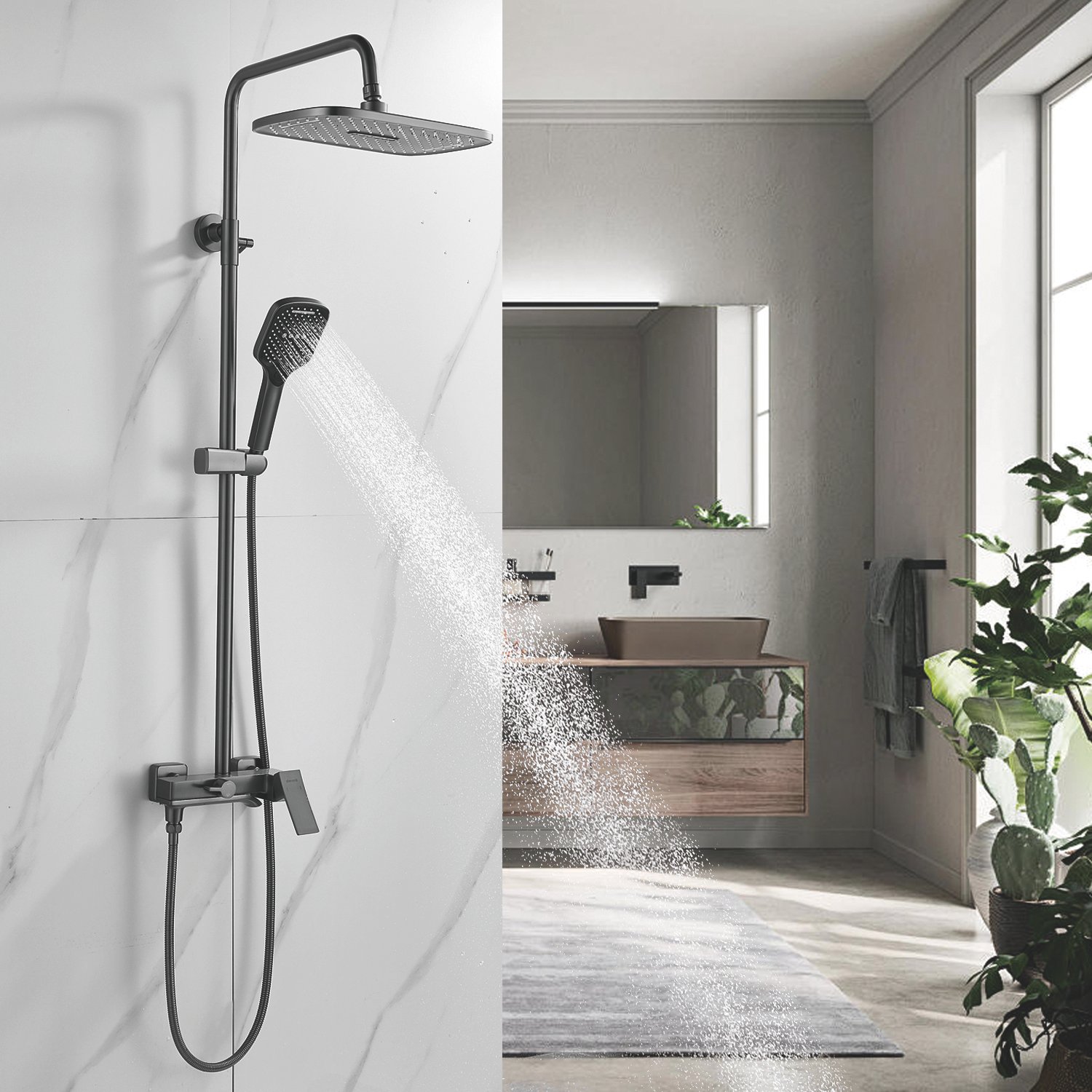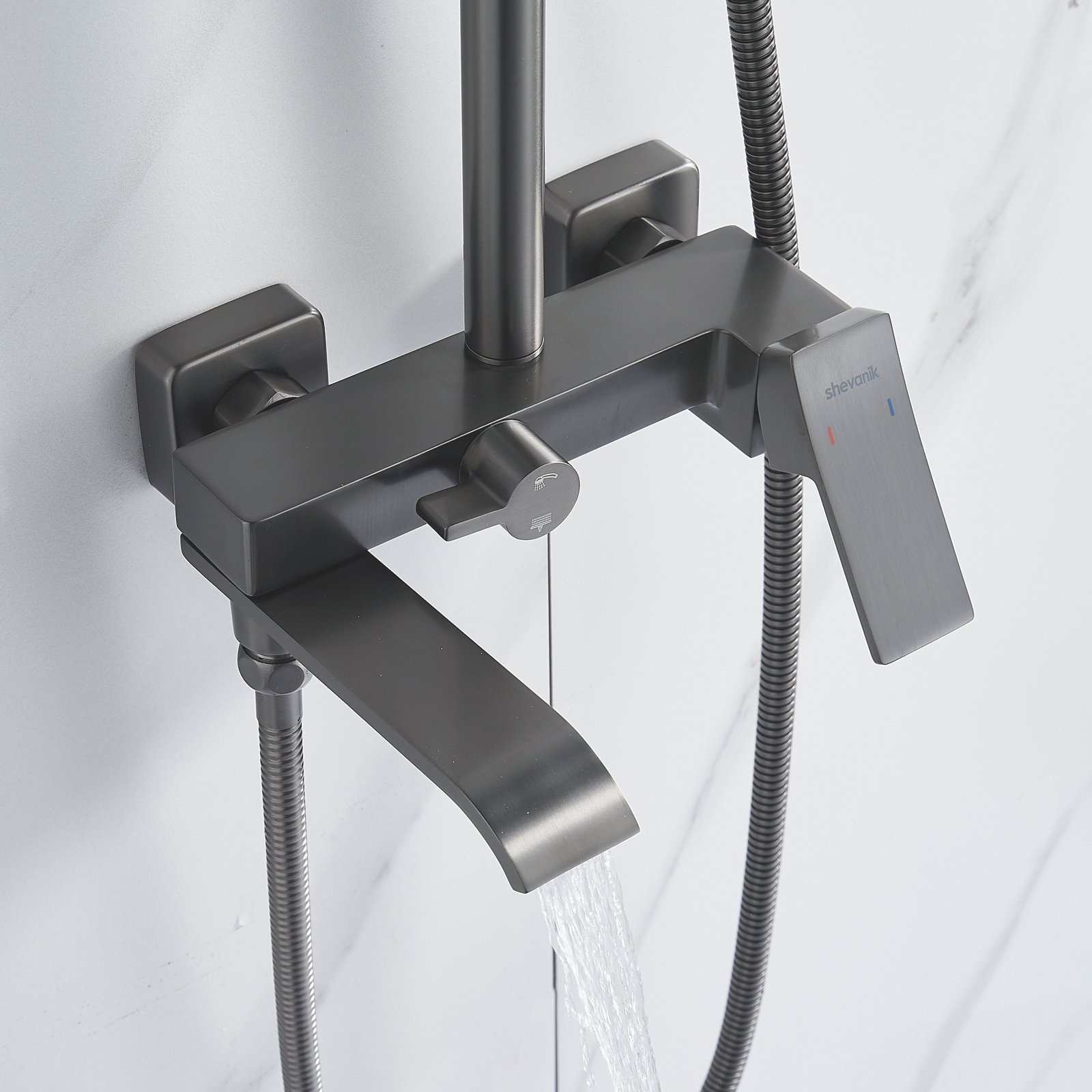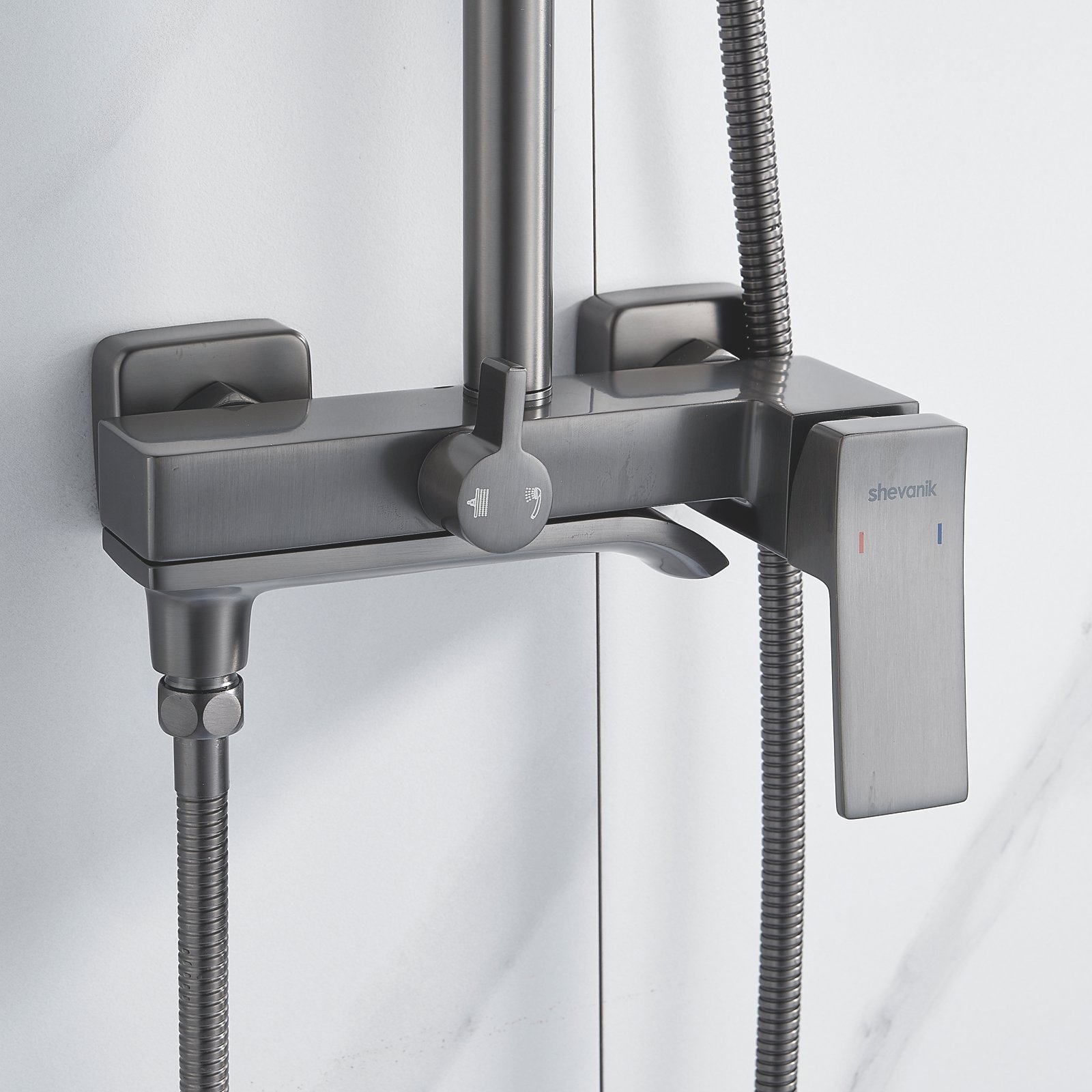 смеситель, верхний душ, штанга, лейка, шланг, эксцентрики, декоративные чашки