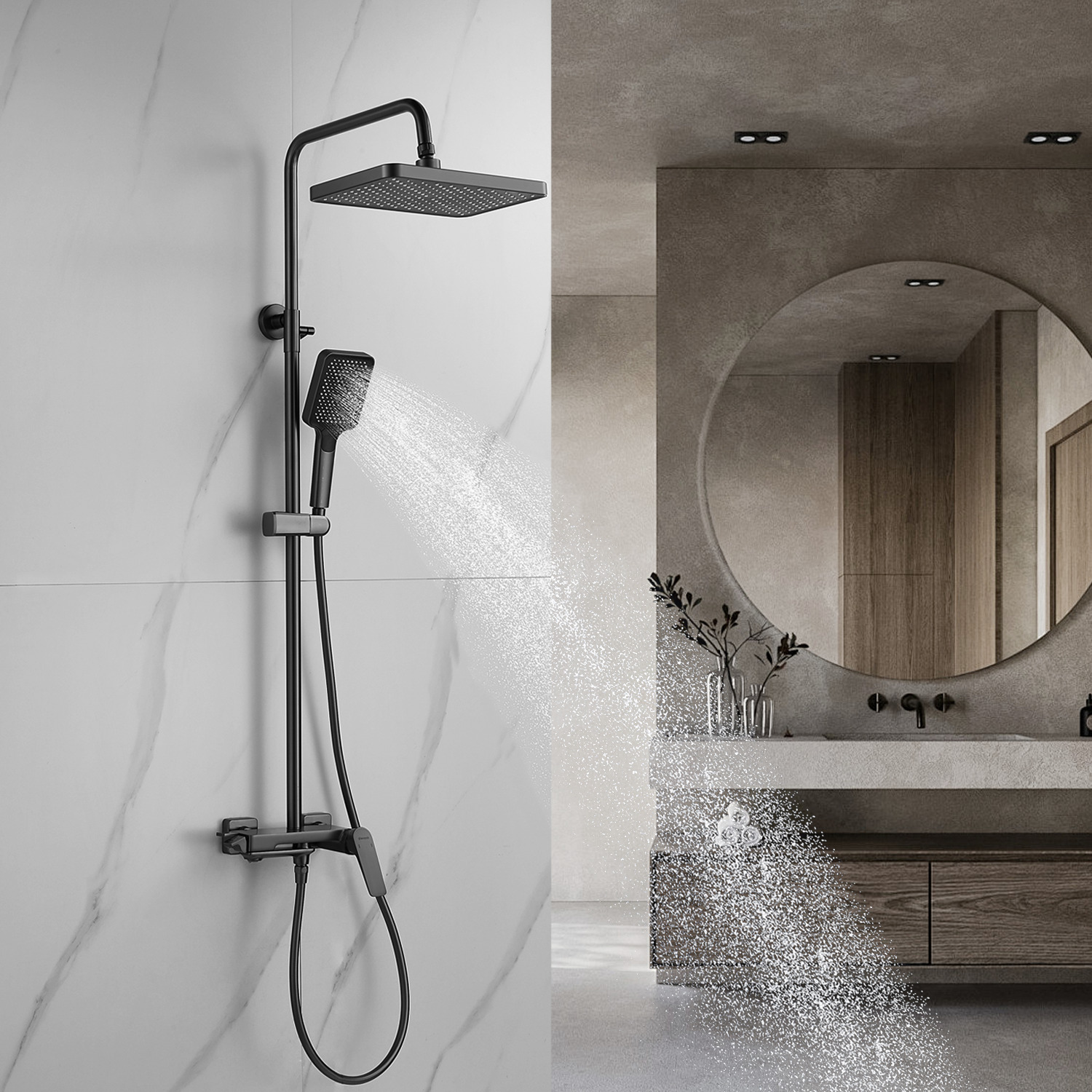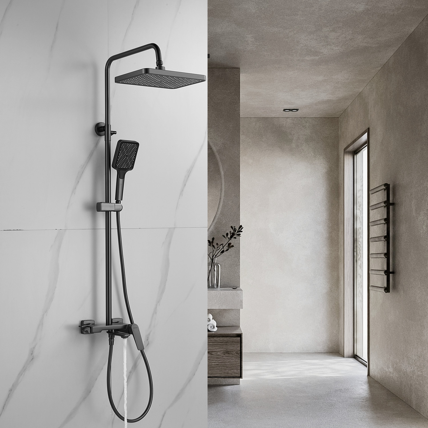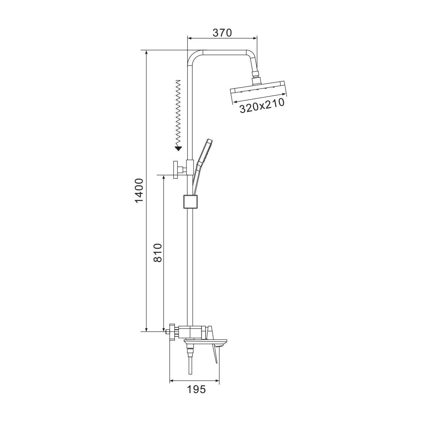 смеситель, верхний душ, штанга, лейка, шланг, эксцентрики, декоративные чашки