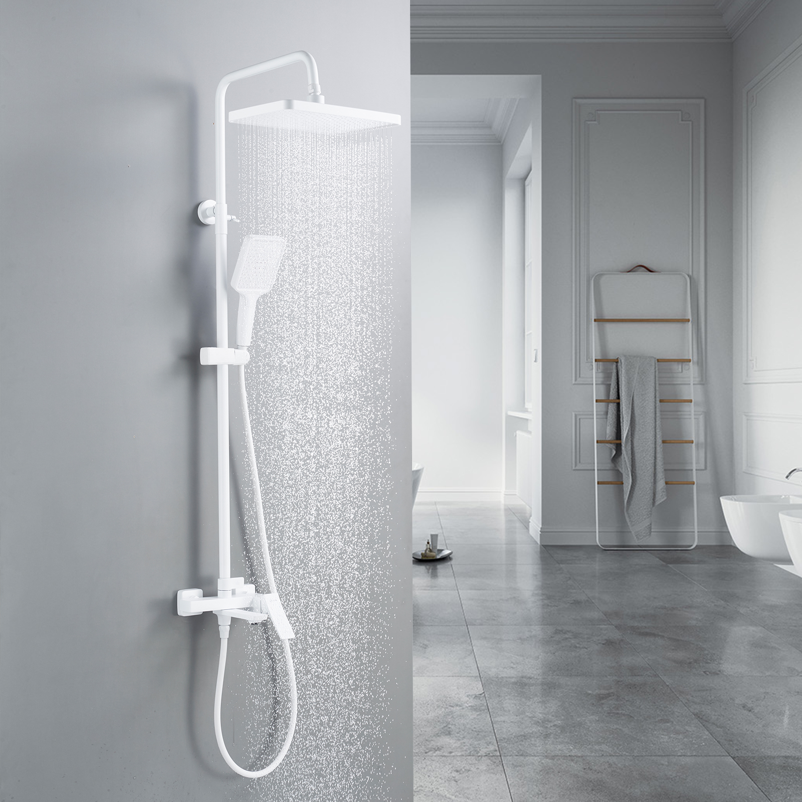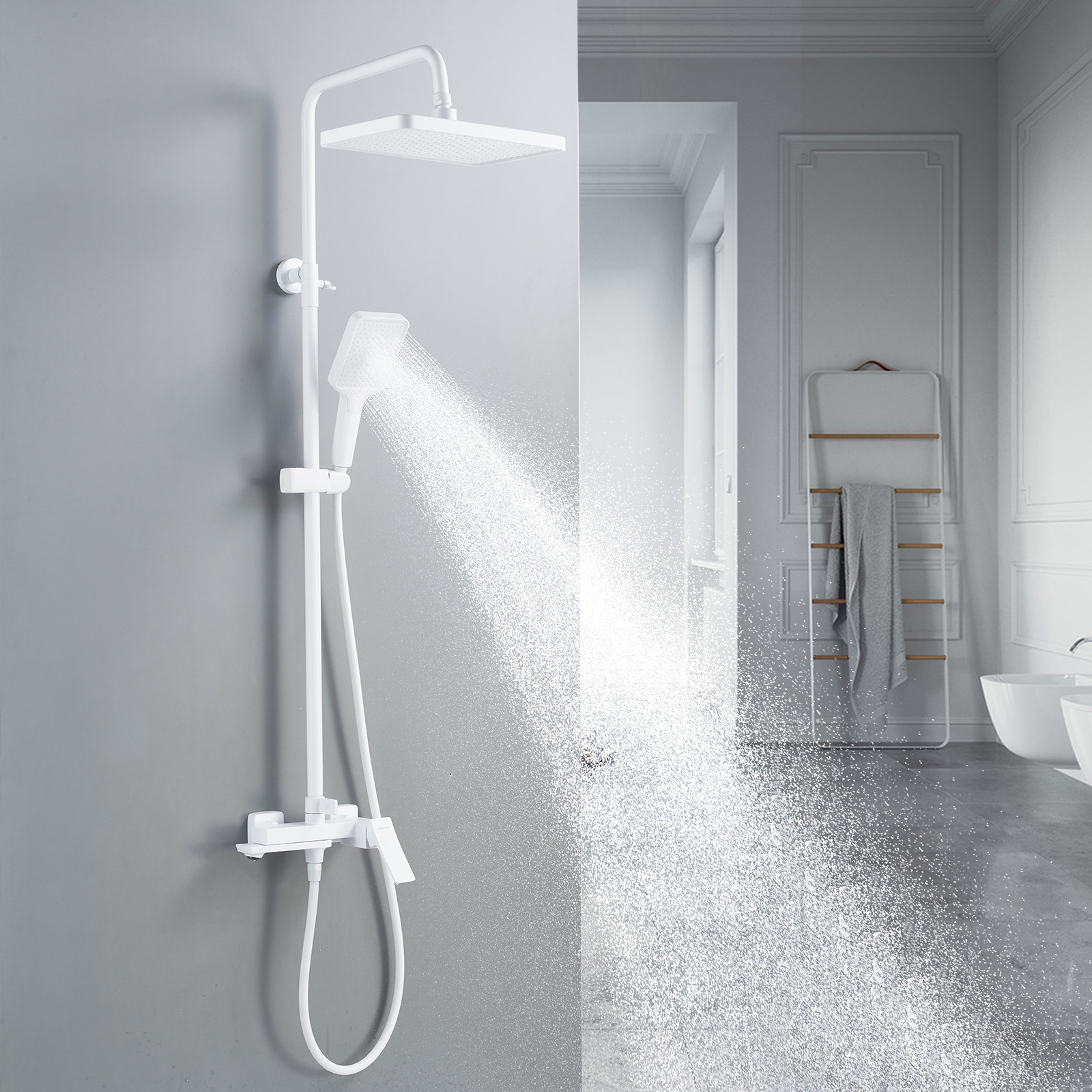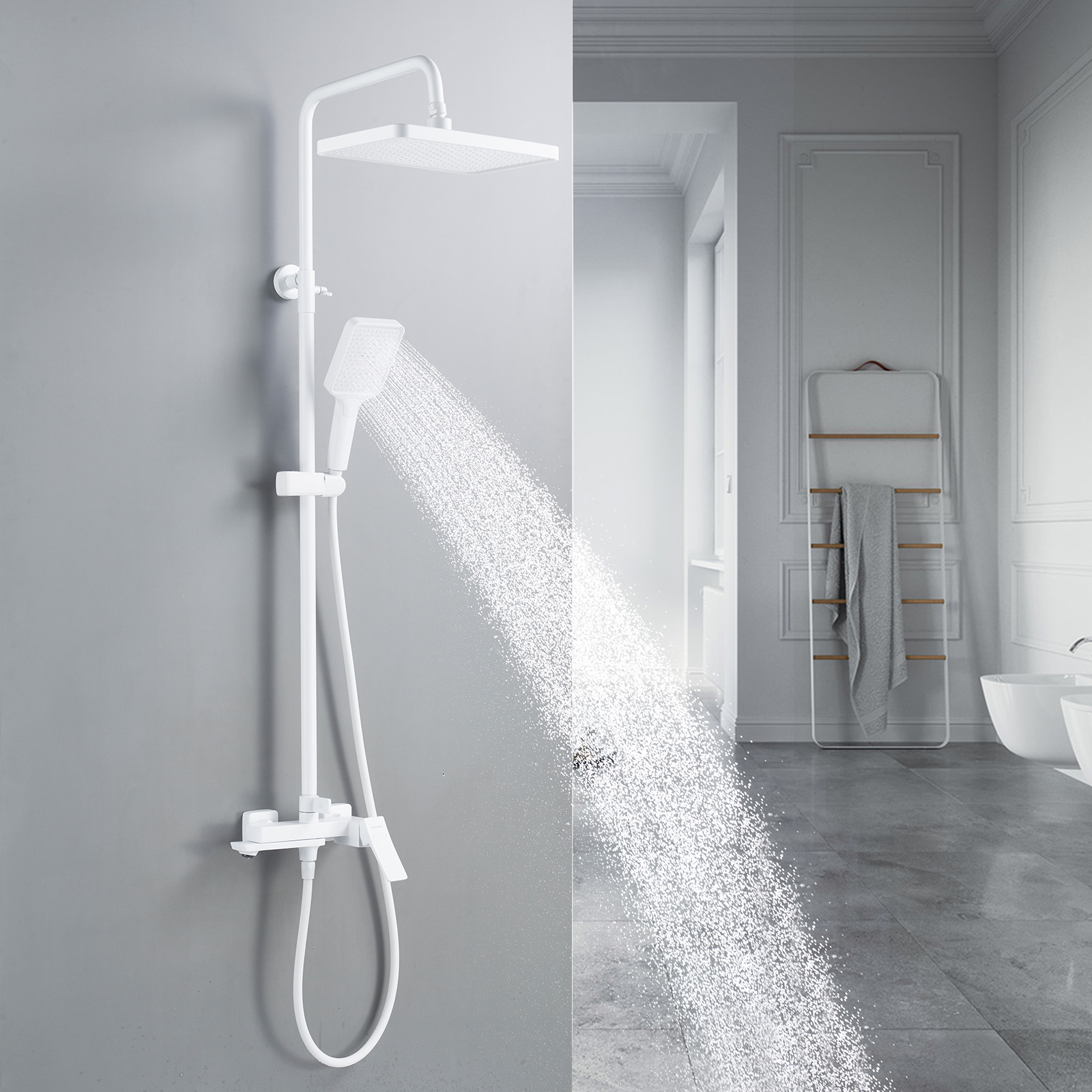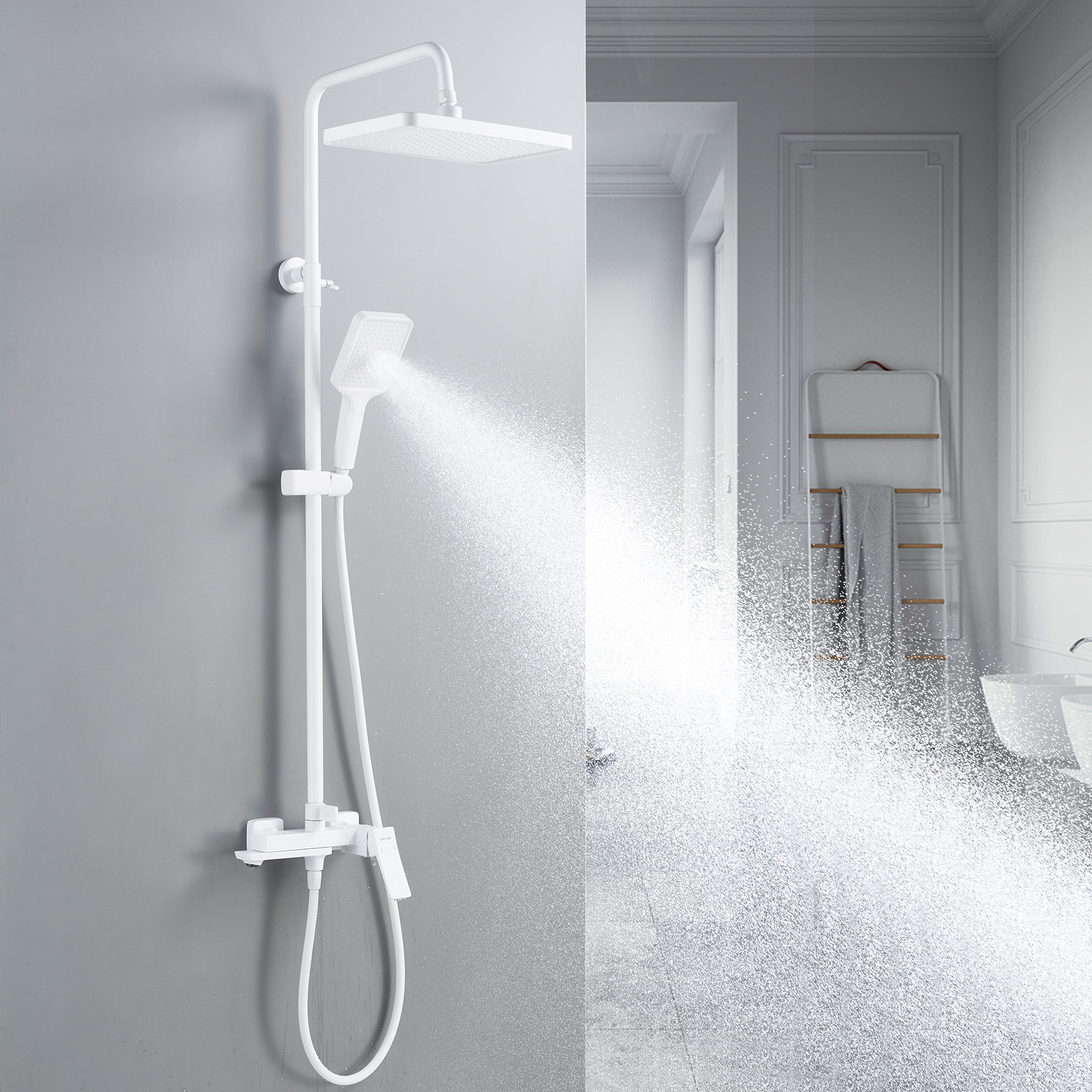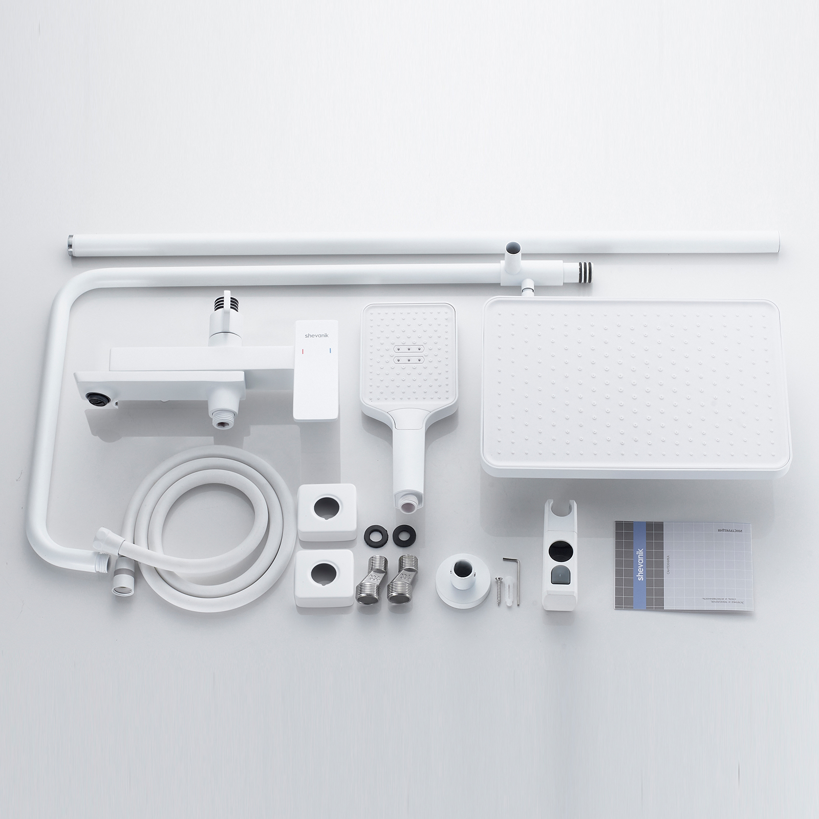 смеситель, верхний душ, штанга, лейка, шланг, эксцентрики, декоративные чашки