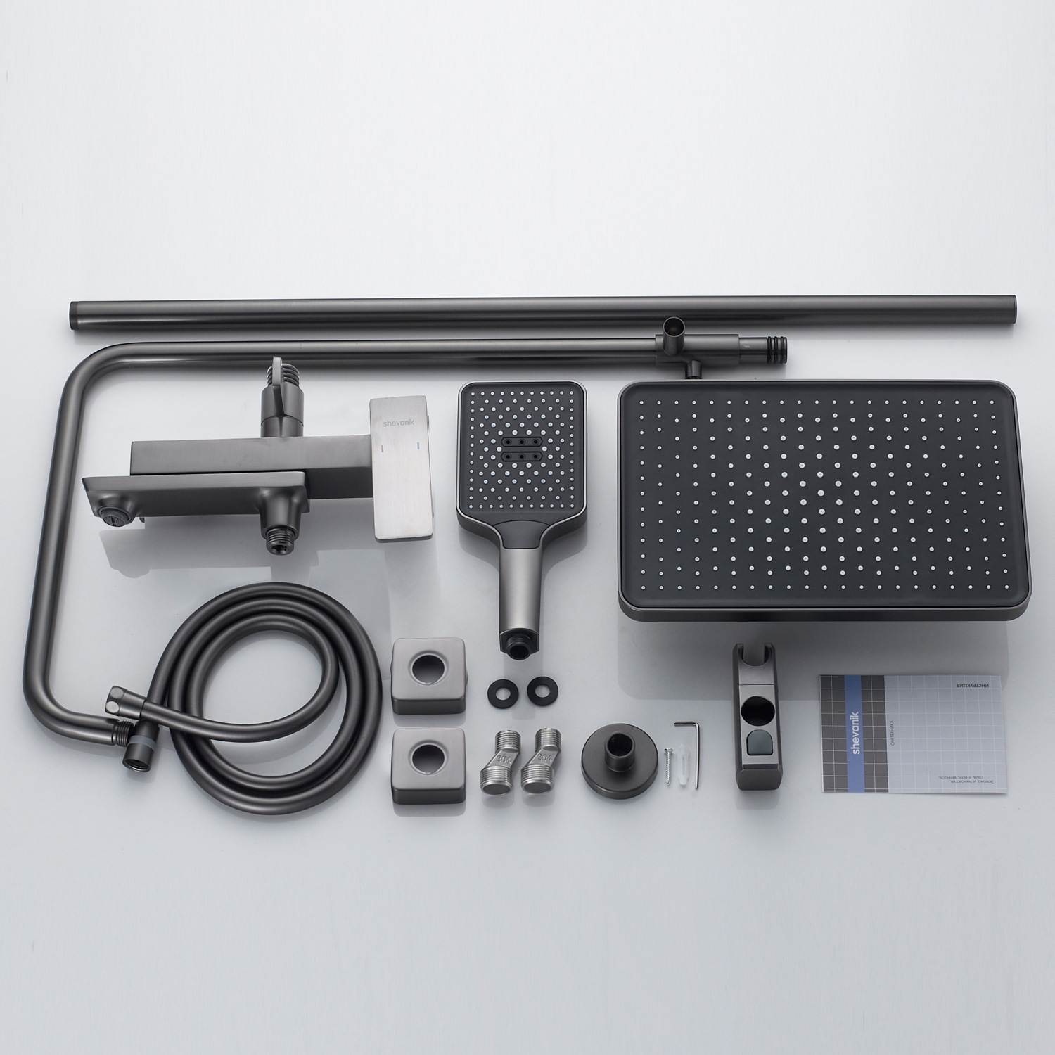 смеситель, верхний душ, штанга, лейка, шланг, эксцентрики, декоративные чашки