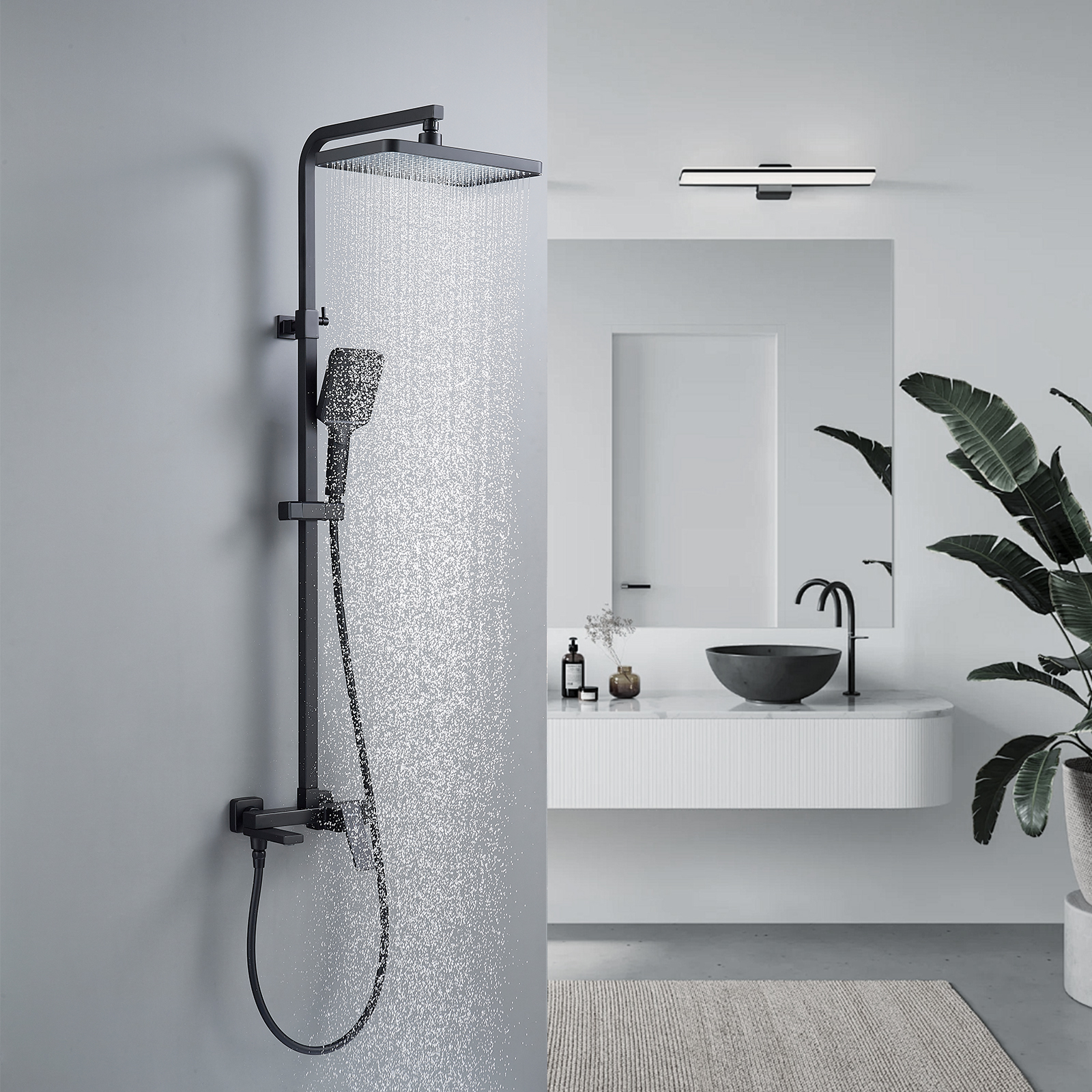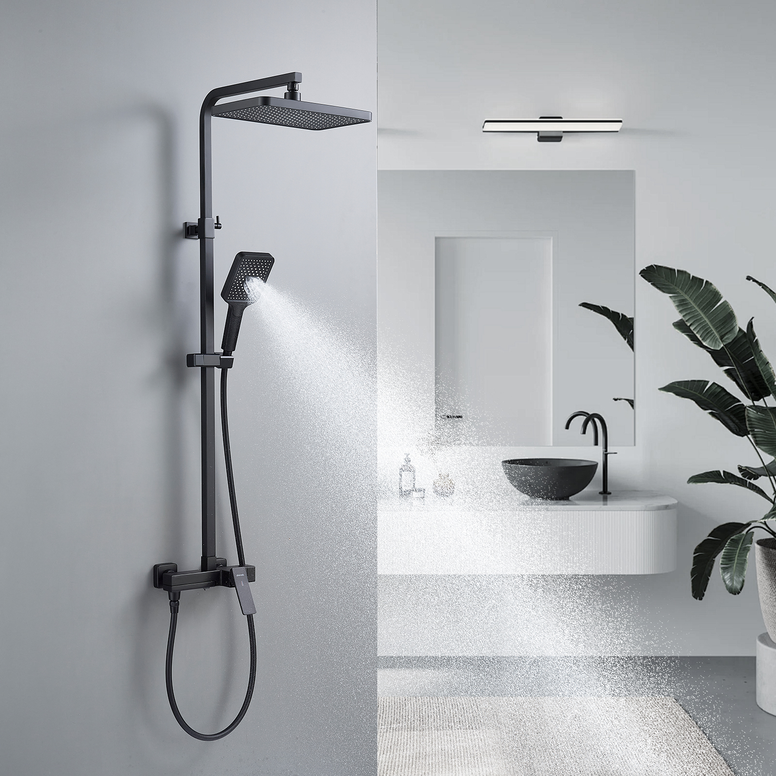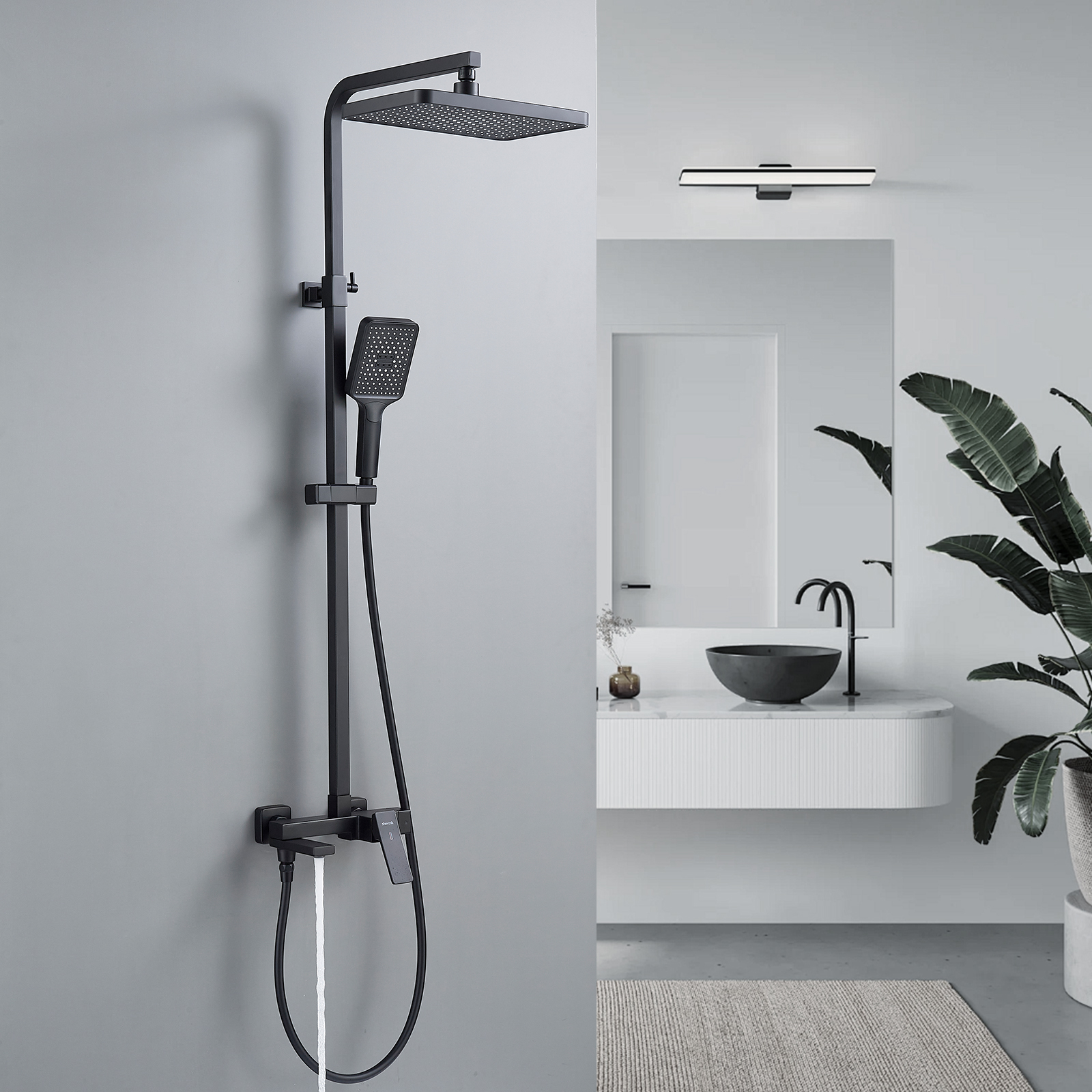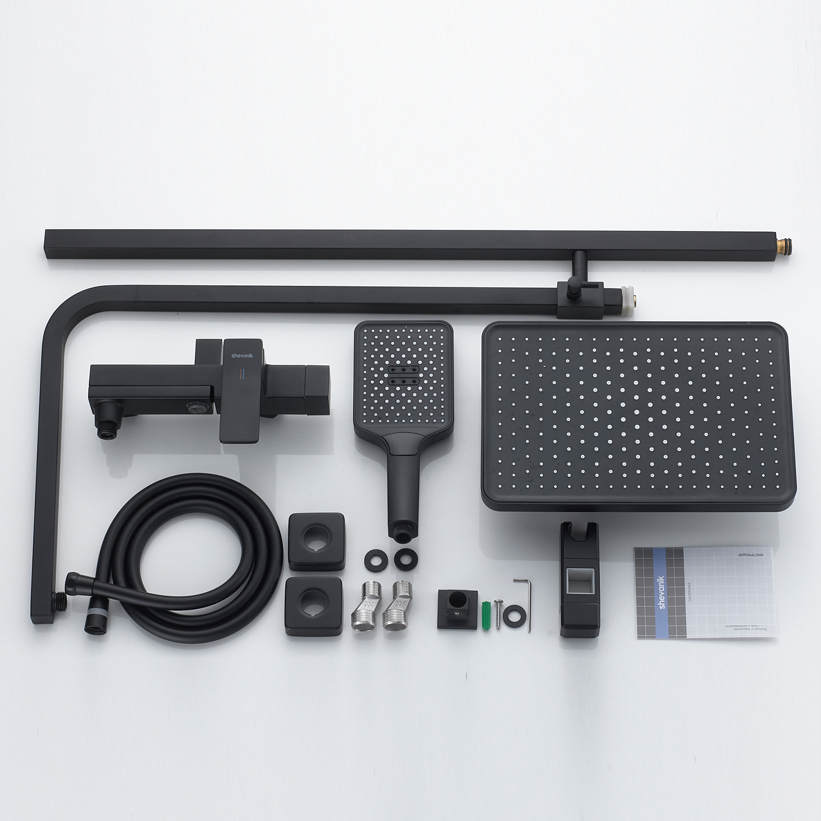 смеситель, верхний душ, штанга, лейка, шланг, эксцентрики, декоративные чашки