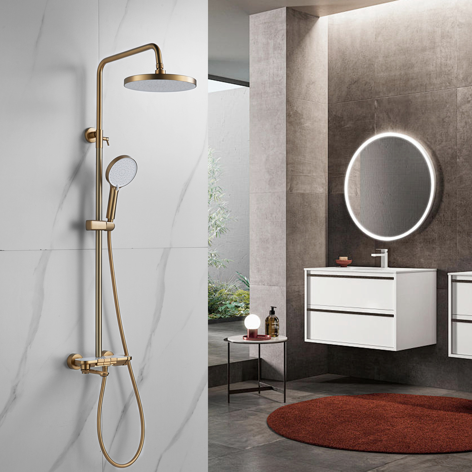 смеситель, верхний душ, штанга, лейка, шланг, эксцентрики, декоративные чашки