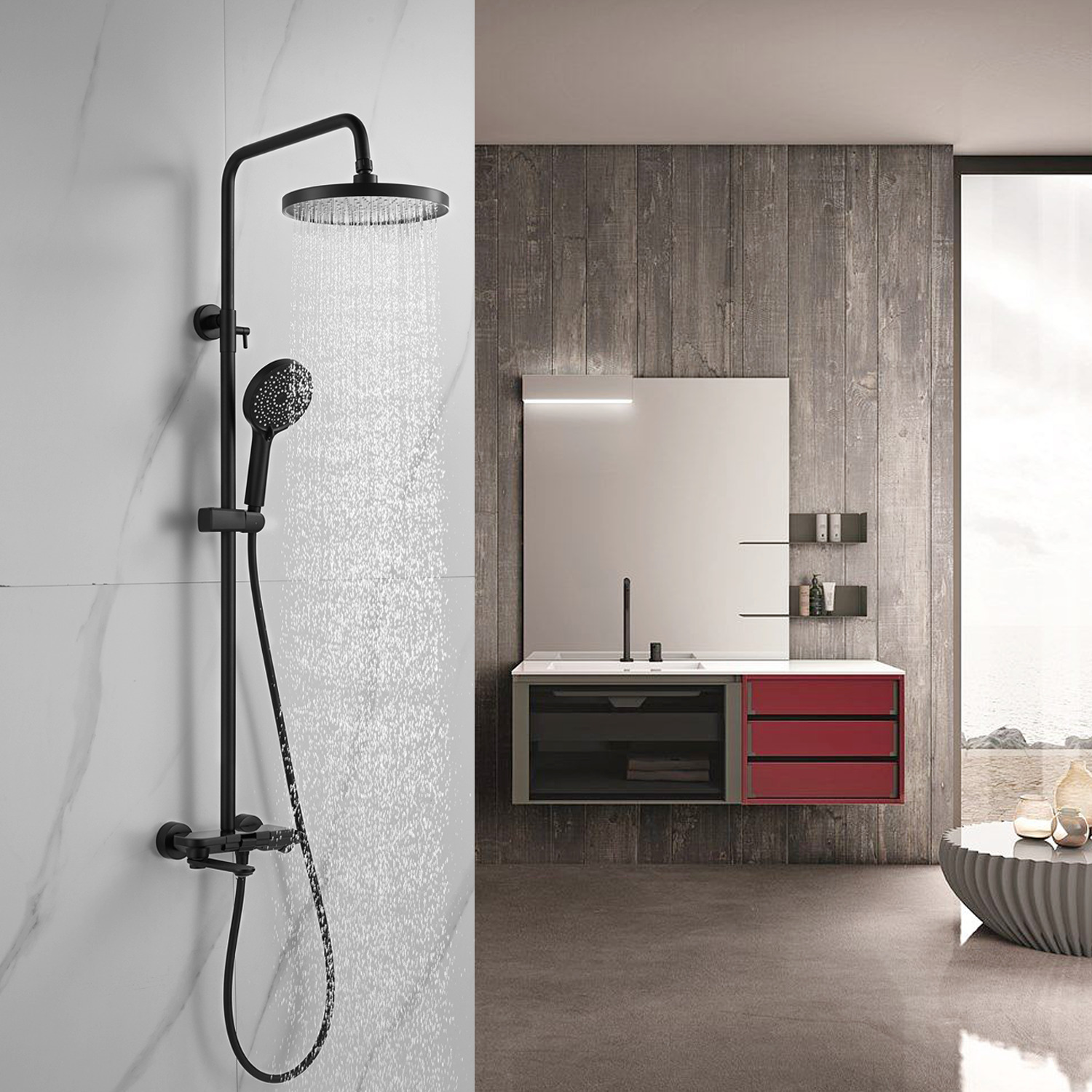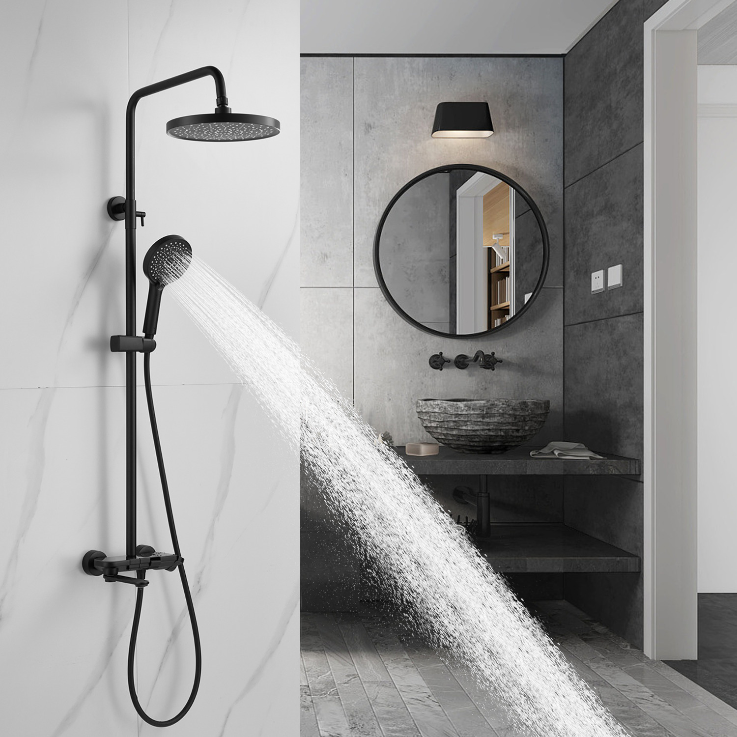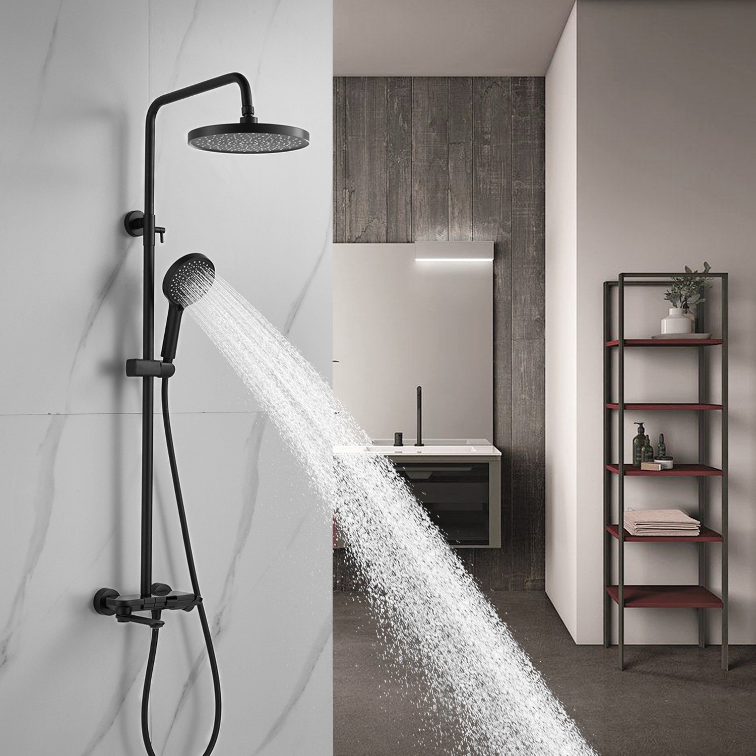 смеситель, верхний душ, штанга, лейка, шланг, эксцентрики, декоративные чашки