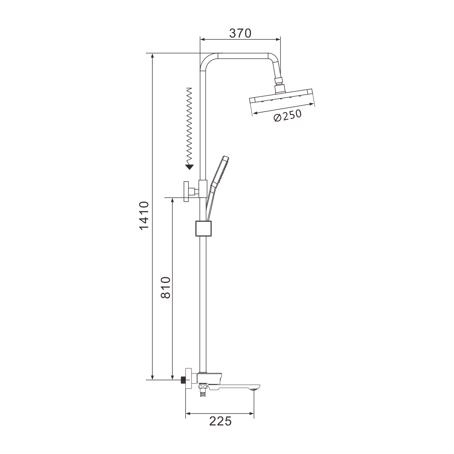 Размер верхнего душа, мм