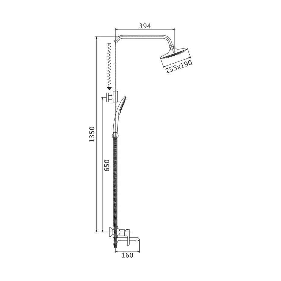 Размер верхнего душа, мм