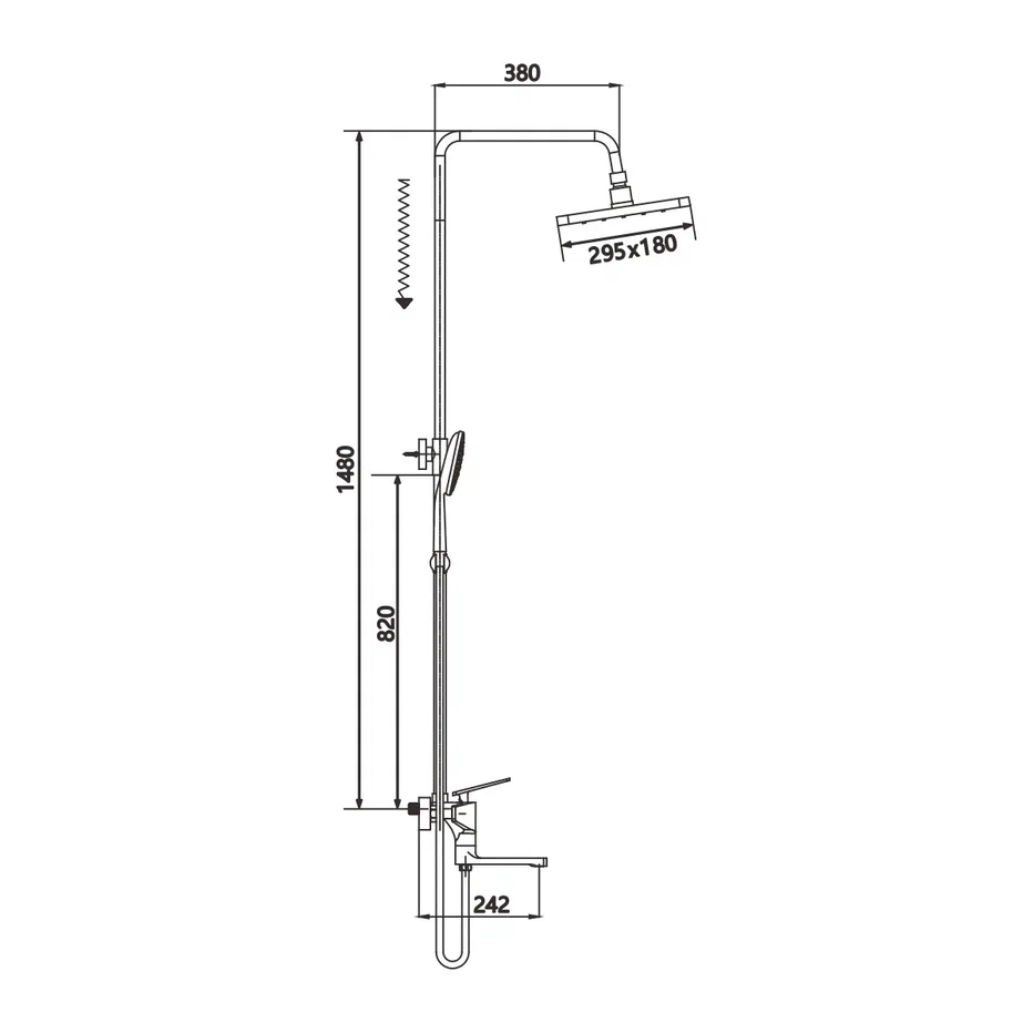 смеситель, верхний душ, штанга, лейка, шланг, эксцентрики, декоративные чашки