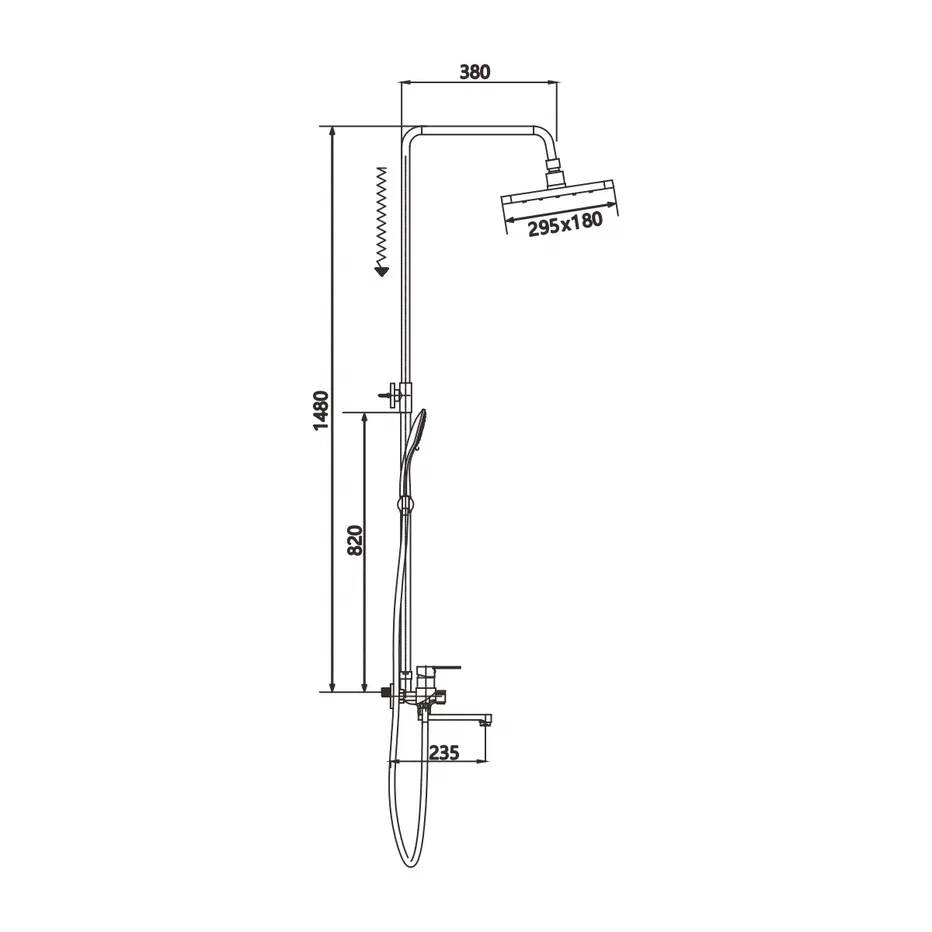 смеситель, верхний душ, штанга, лейка, шланг, эксцентрики, декоративные чашки