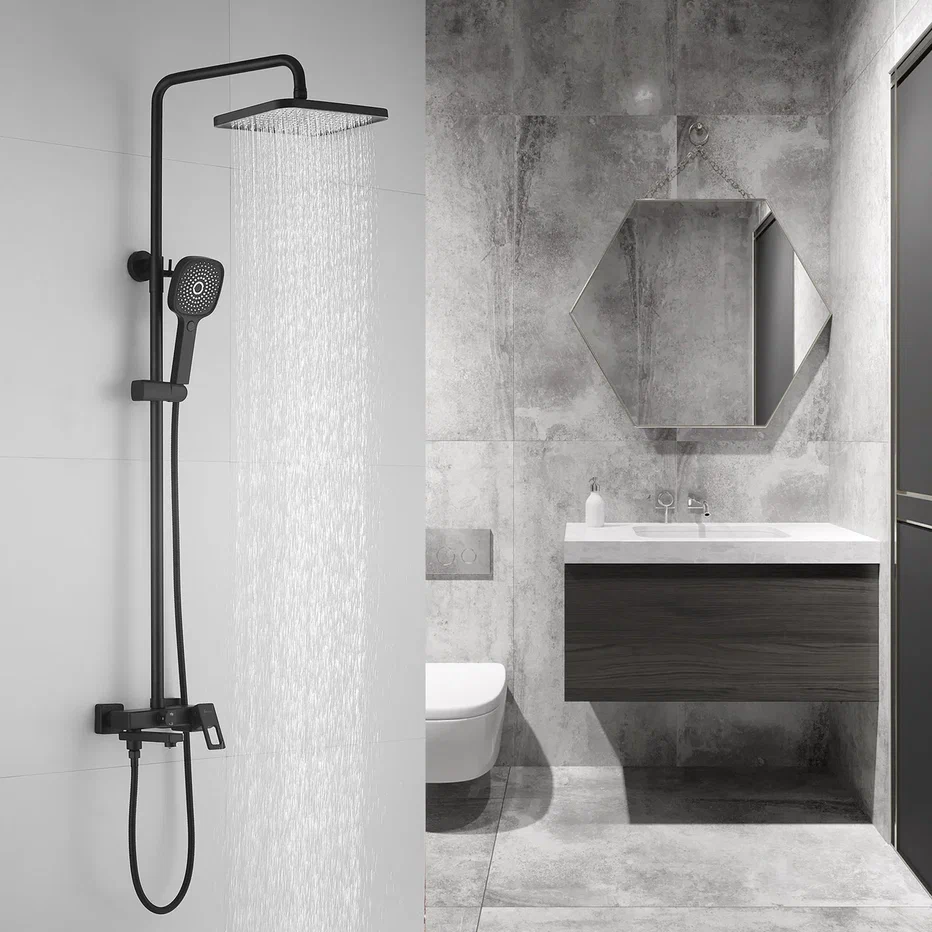 смеситель, верхний душ, штанга, лейка, шланг, эксцентрики, декоративные чашки