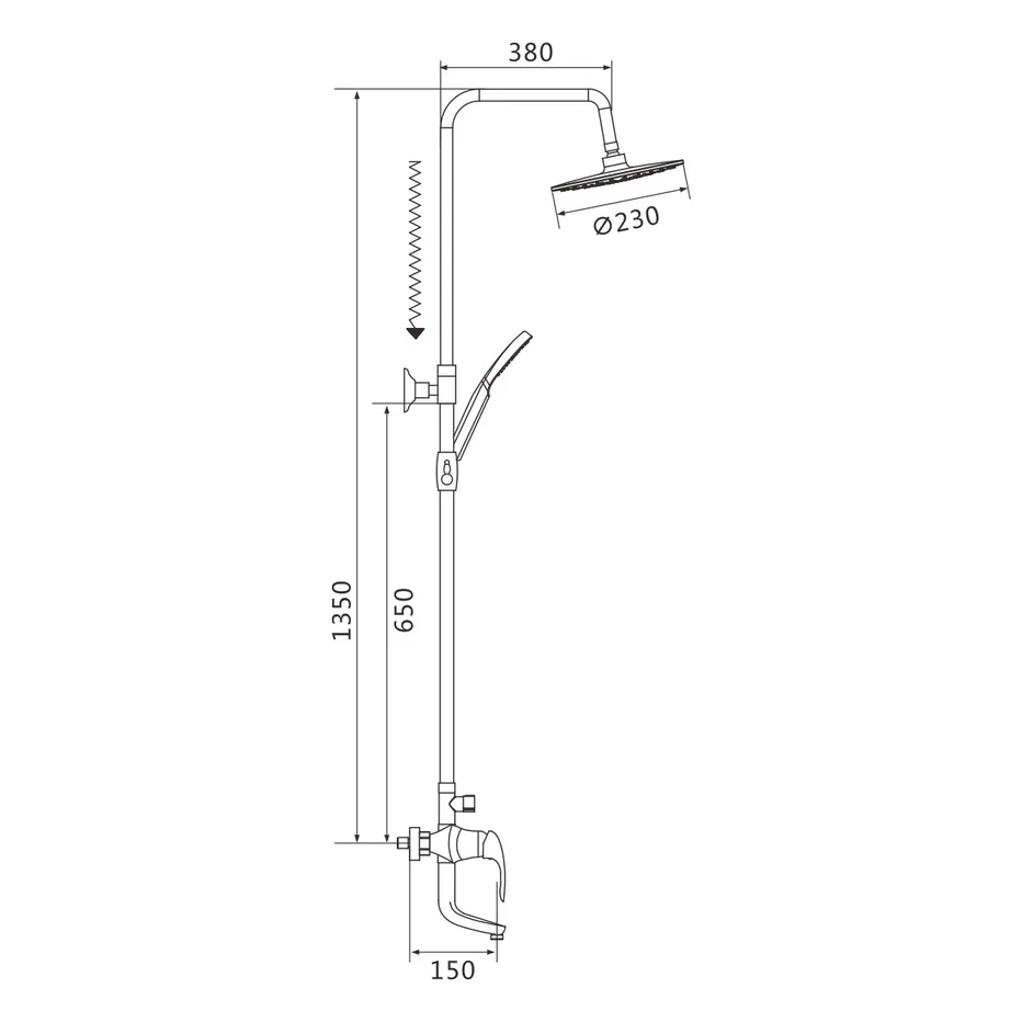смеситель, верхний душ, штанга, лейка, шланг, эксцентрики, декоративные чашки