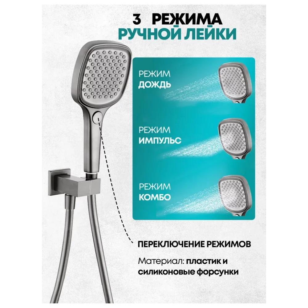 смеситель, внутренняя часть, шланговое подключение, держатель душевой лейки, лейка, душевой шланг, верхний душ с кронштейном