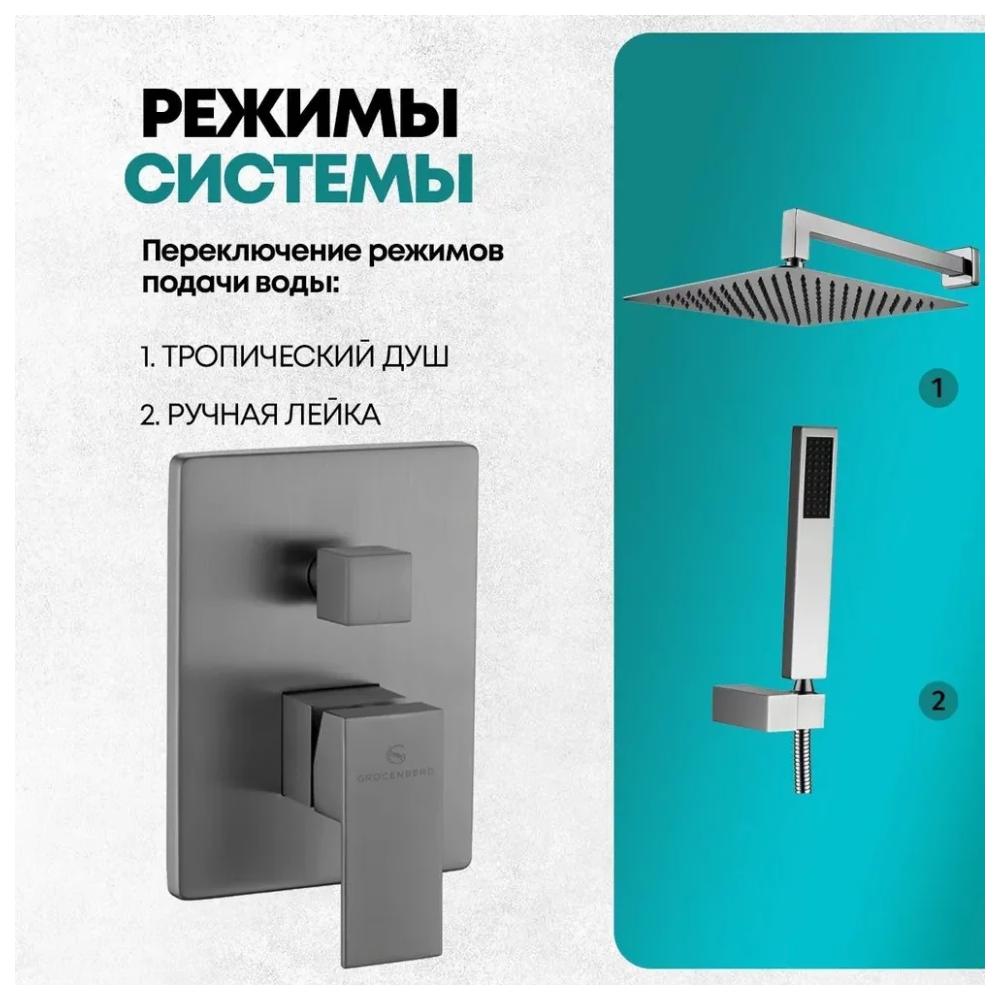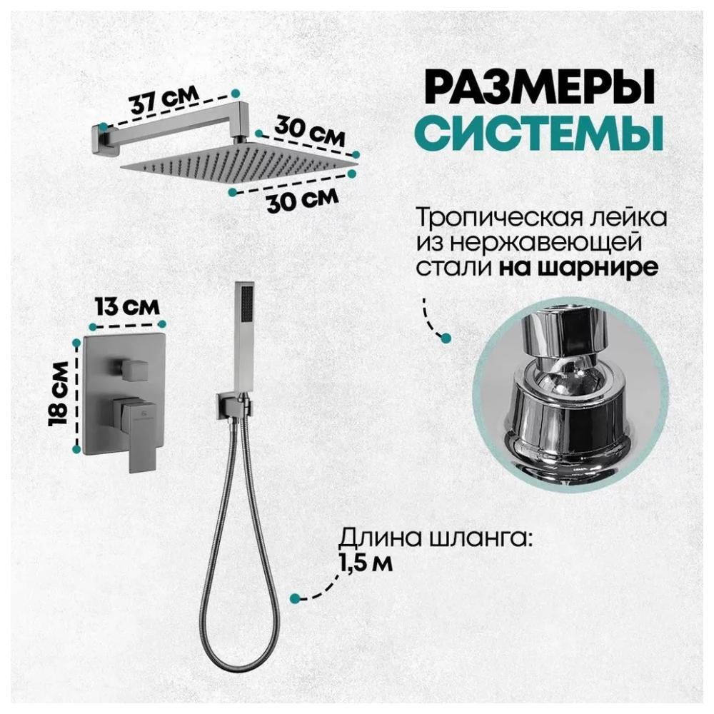 смеситель, внутренняя часть, шланговое подключение, держатель душевой лейки, лейка, душевой шланг, верхний душ с кронштейном
