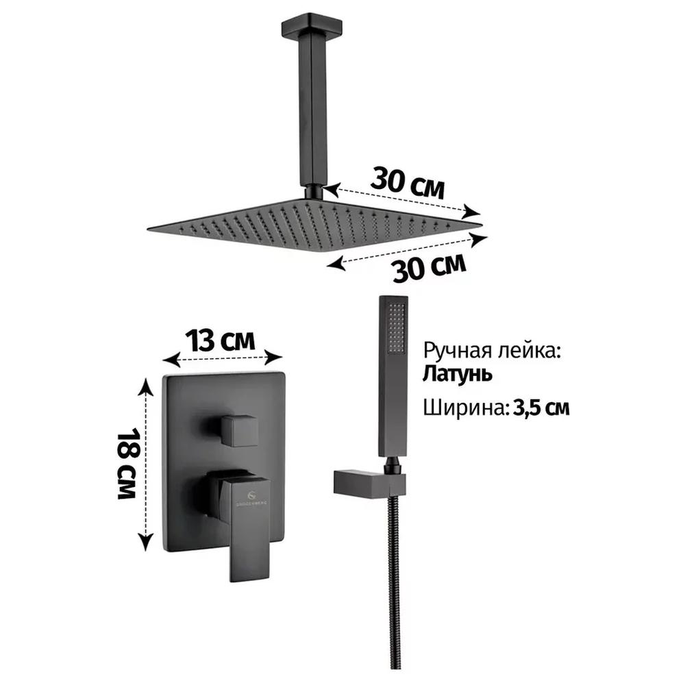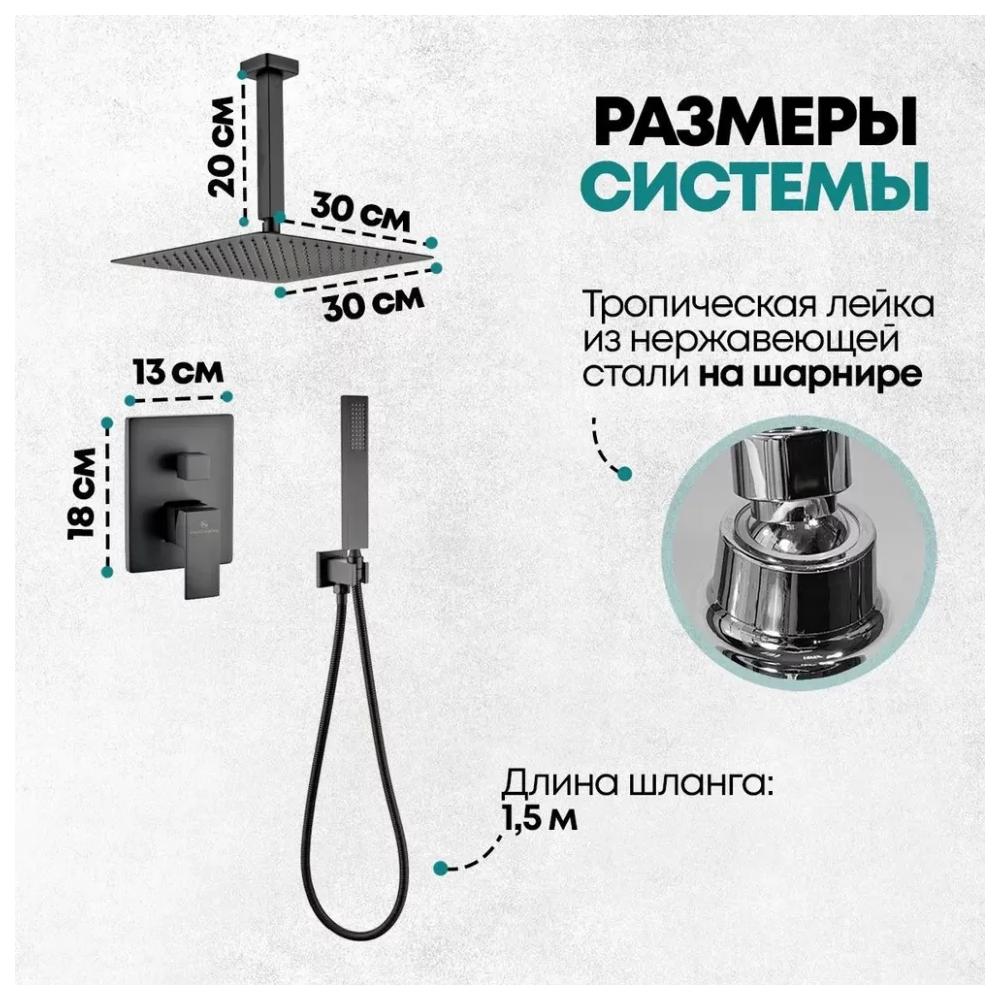 смеситель, внутренняя часть, шланговое подключение, держатель душевой лейки, лейка, душевой шланг, верхний душ с кронштейном