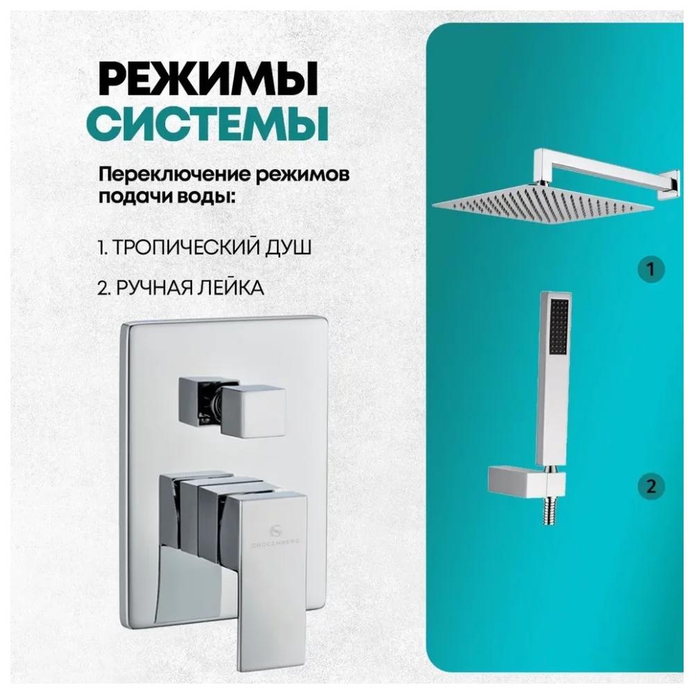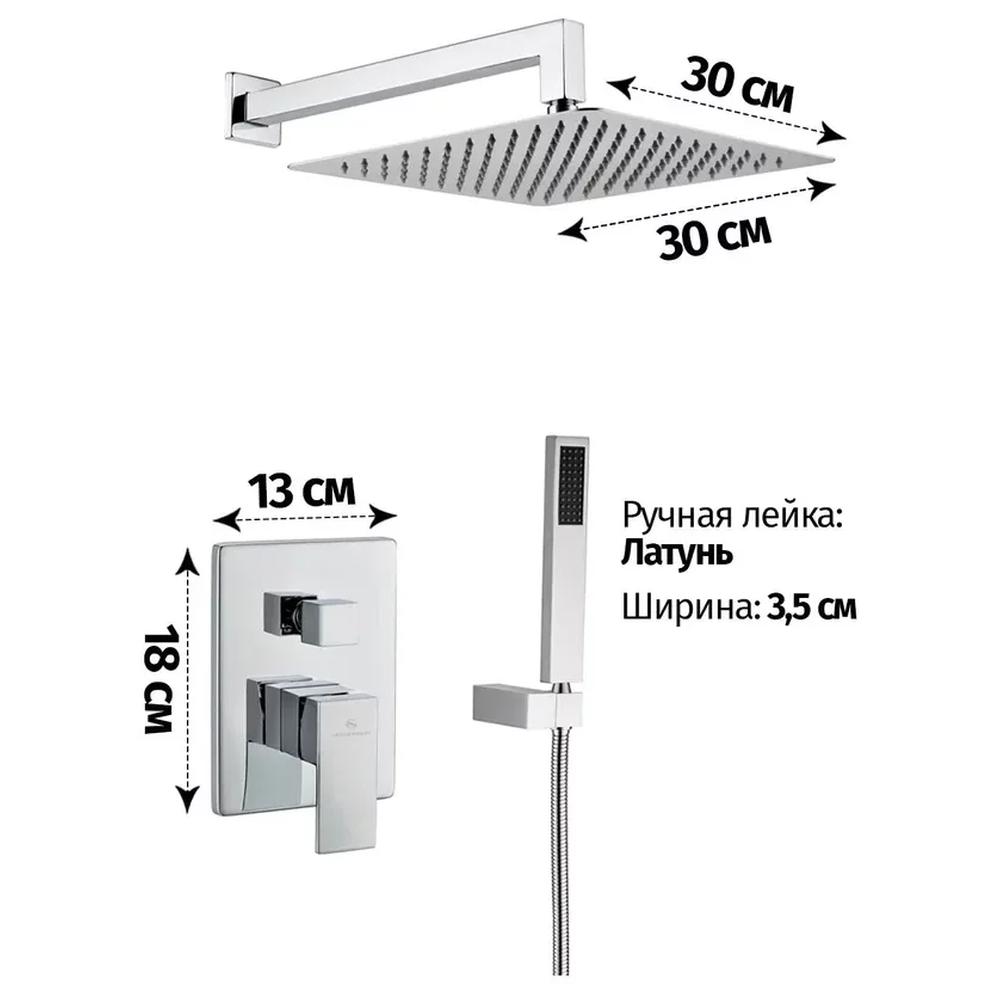 смеситель, внутренняя часть, шланговое подключение, держатель душевой лейки, лейка, душевой шланг, верхний душ с кронштейном