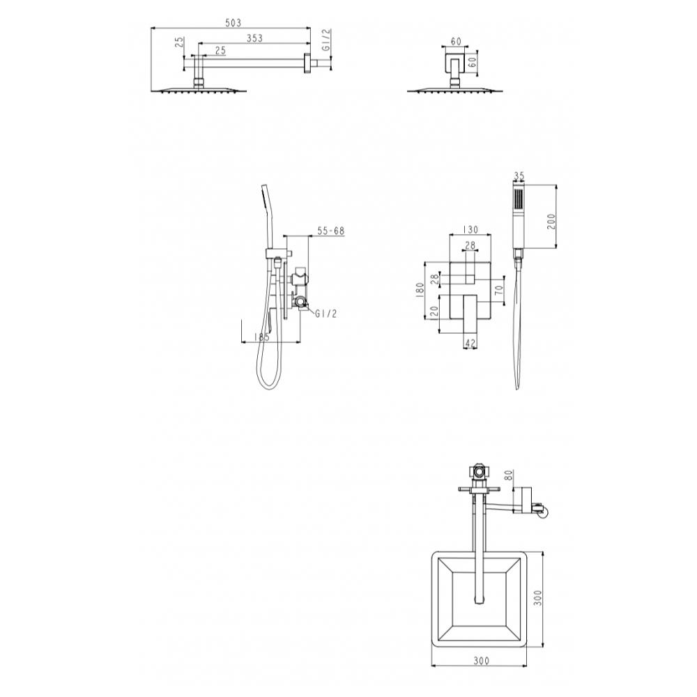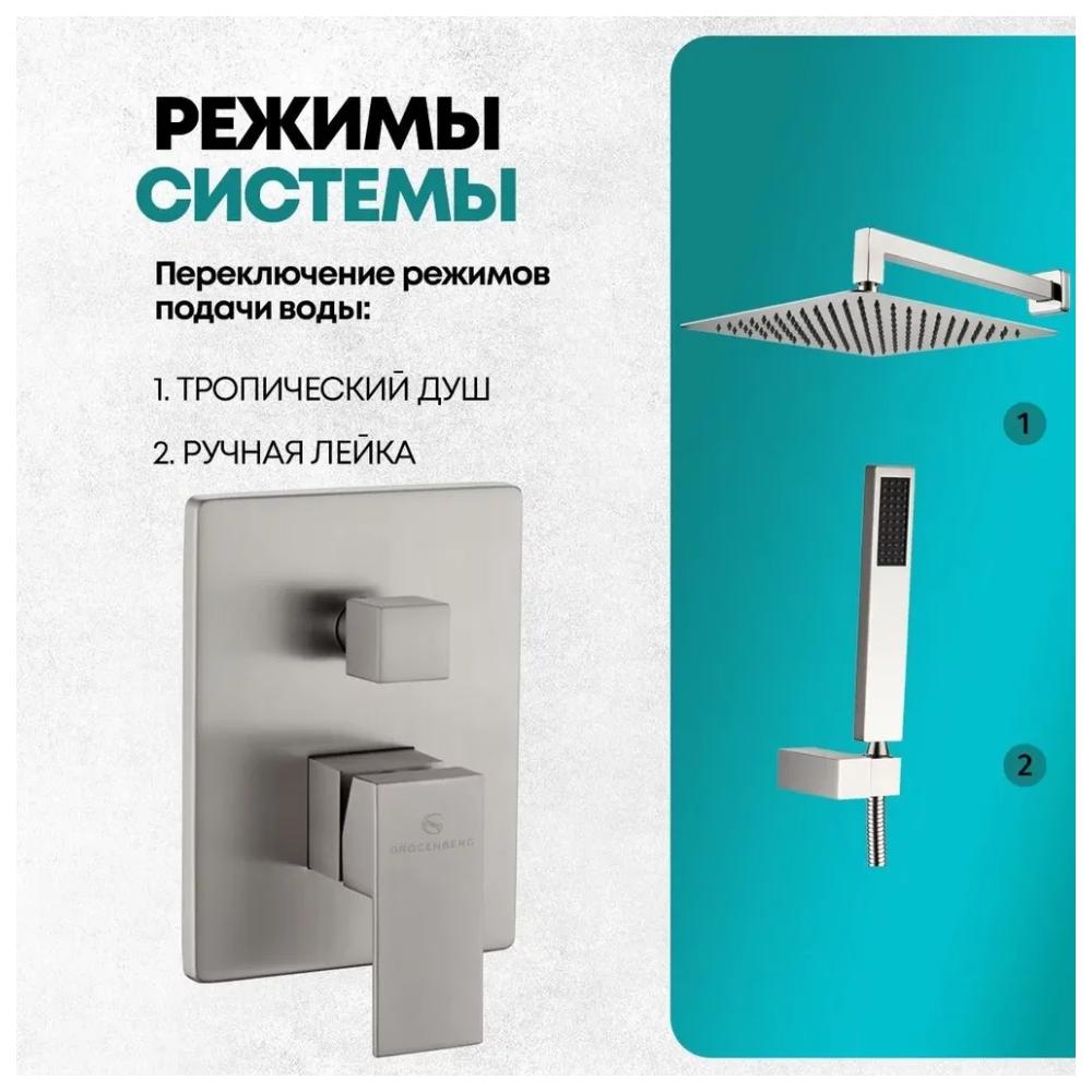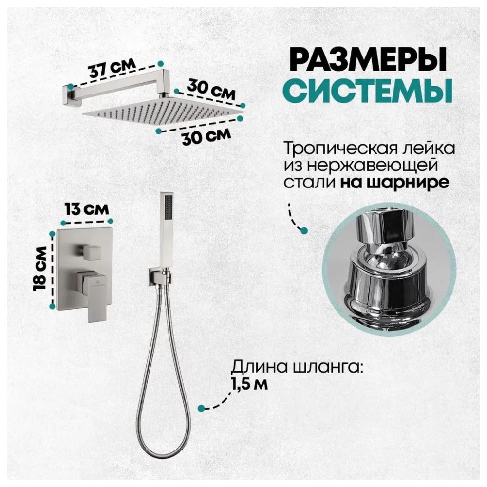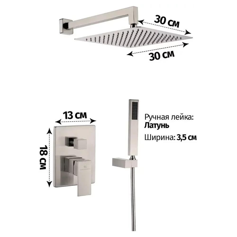 смеситель, внутренняя часть, шланговое подключение, держатель душевой лейки, лейка, душевой шланг, верхний душ с кронштейном