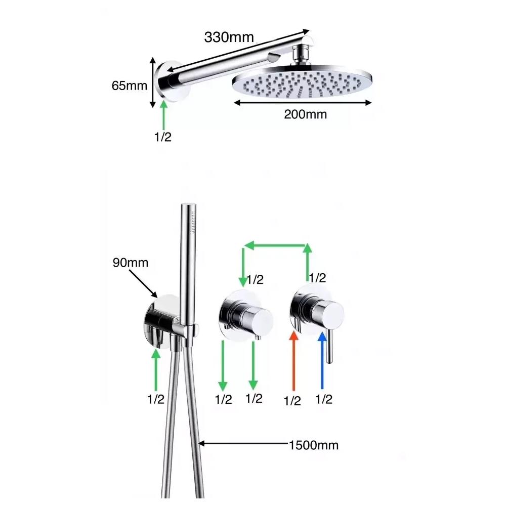 смеситель, внутренняя часть, шланговое подключение, держатель душевой лейки, лейка, душевой шланг, верхний душ с кронштейном