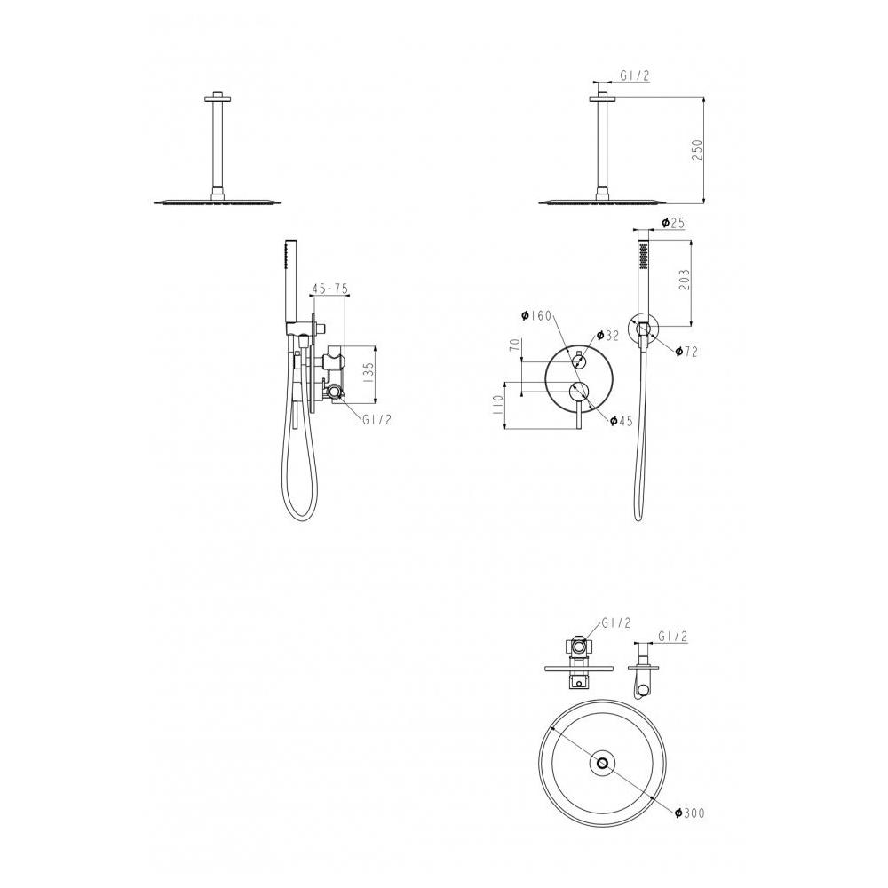 Размер верхнего душа, мм