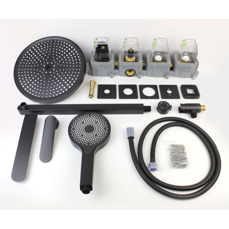 смеситель, внутренняя часть, верхний душ, шланговое подключение с держателем лейки, душевая лейка, шланг, излив