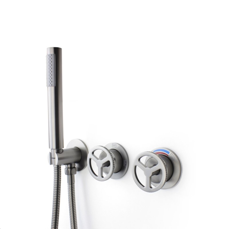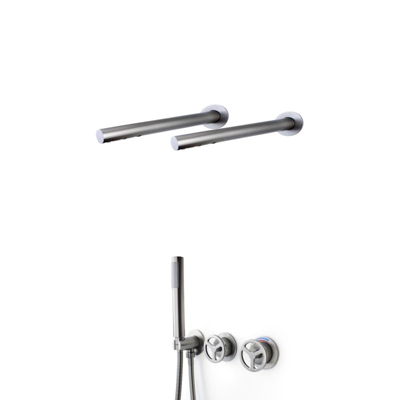 смеситель, внутренняя часть, верхний душ (2 единицы), шланговое подключение с держателем лейки, душевая лейка, шланг