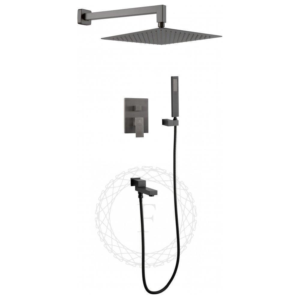 смеситель, внутренняя часть, шланговое подключение с изливом, держатель душевой лейки, лейка, душевой шланг, верхний душ с кронштейном