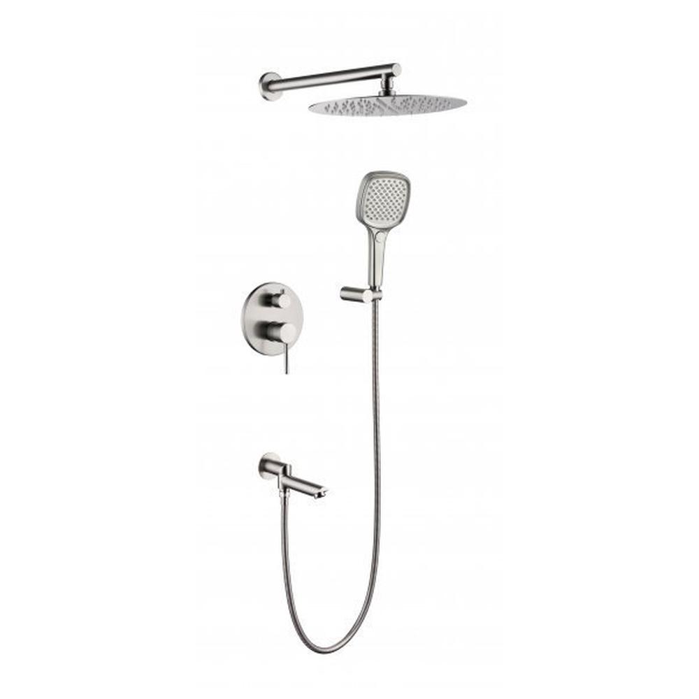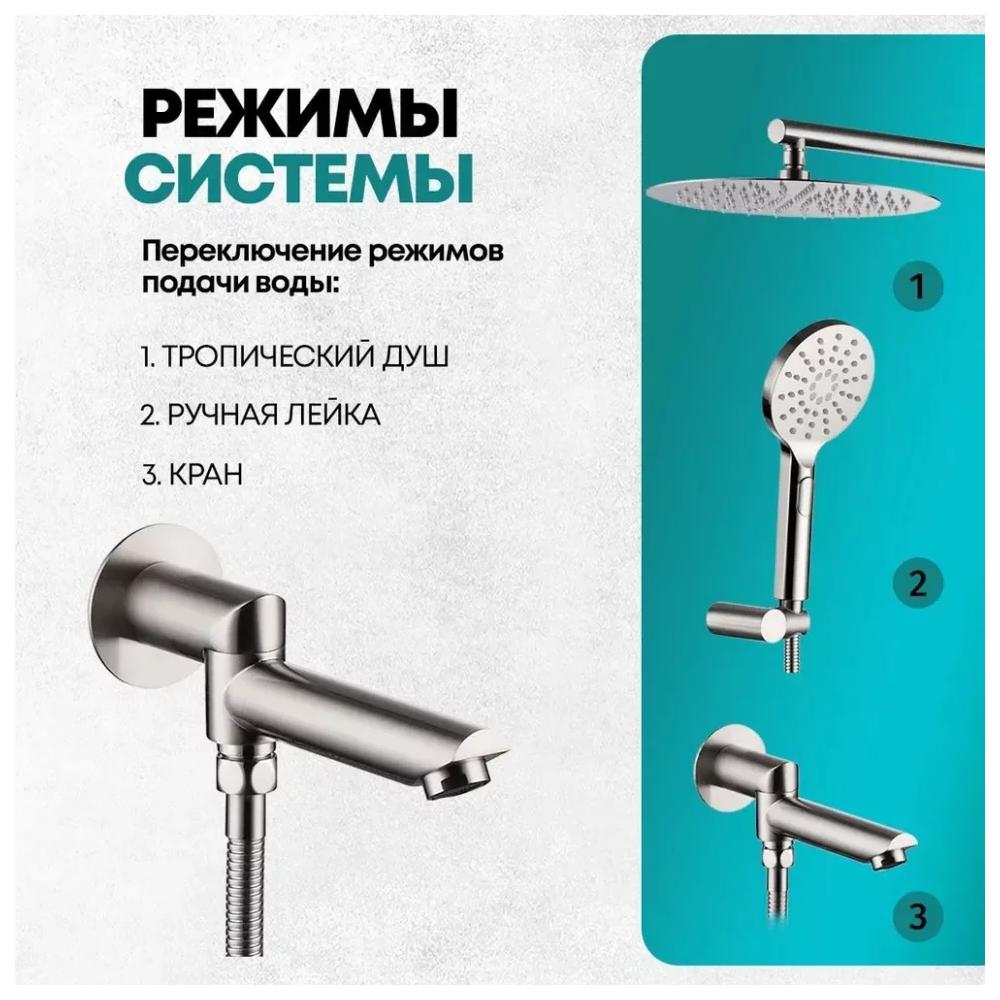 смеситель, внутренняя часть, шланговое подключение с изливом, держатель душевой лейки, лейка, душевой шланг, верхний душ с кронштейном