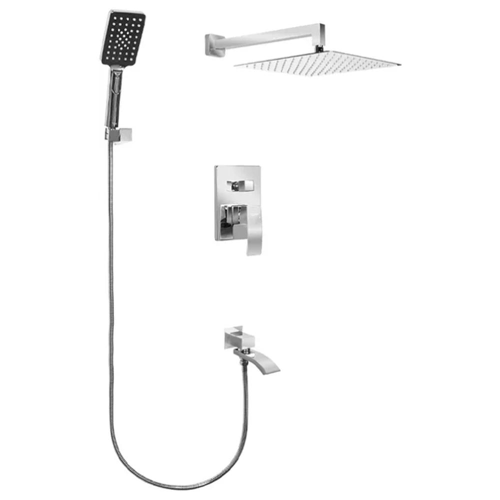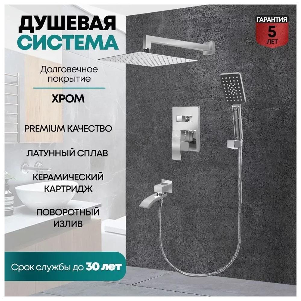 смеситель, внутренняя часть, шланговое подключение с изливом, держатель душевой лейки, лейка, душевой шланг, верхний душ с кронштейном