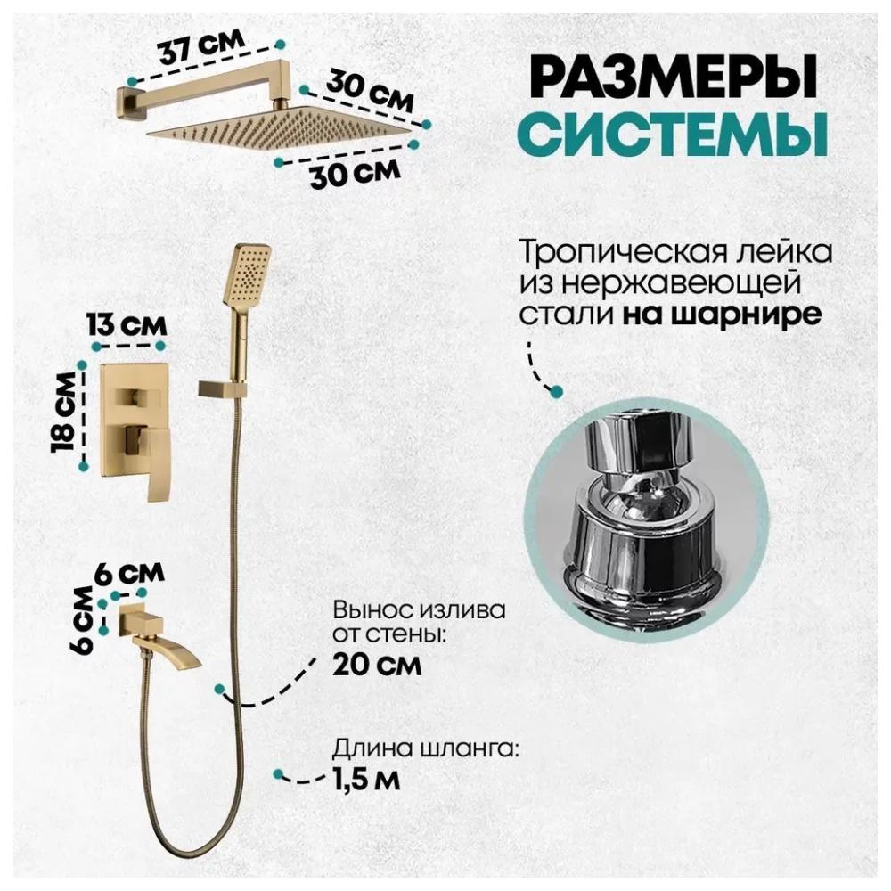 смеситель, внутренняя часть, шланговое подключение с изливом, держатель душевой лейки, лейка, душевой шланг, верхний душ с кронштейном