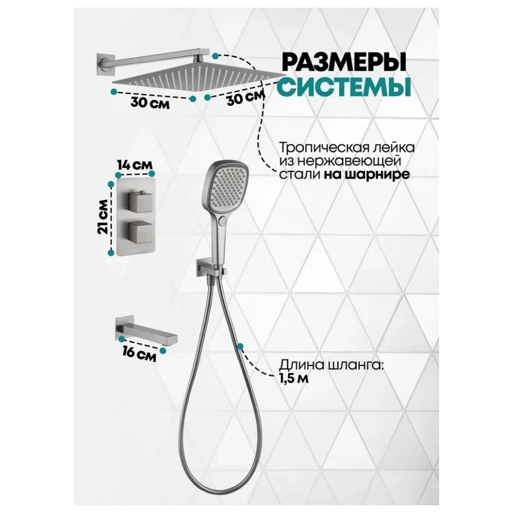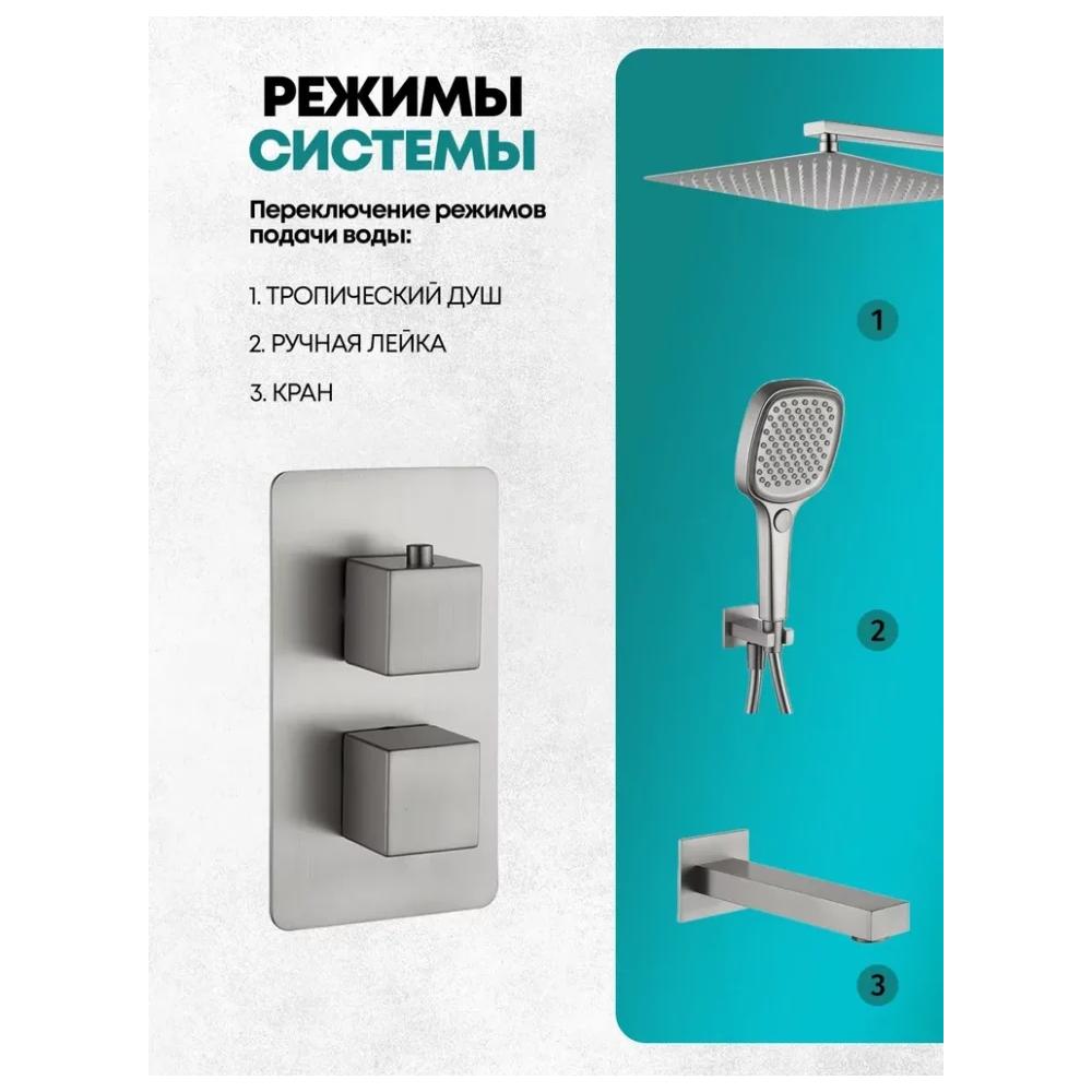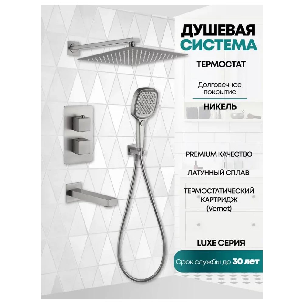 смеситель, внутренняя часть, шланговое подключение с изливом, держатель душевой лейки, лейка, душевой шланг, верхний душ с кронштейном
