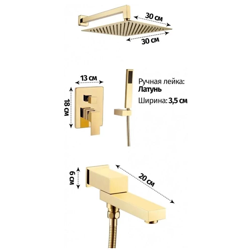 смеситель, внутренняя часть, шланговое подключение с изливом, держатель душевой лейки, лейка, душевой шланг, верхний душ с кронштейном