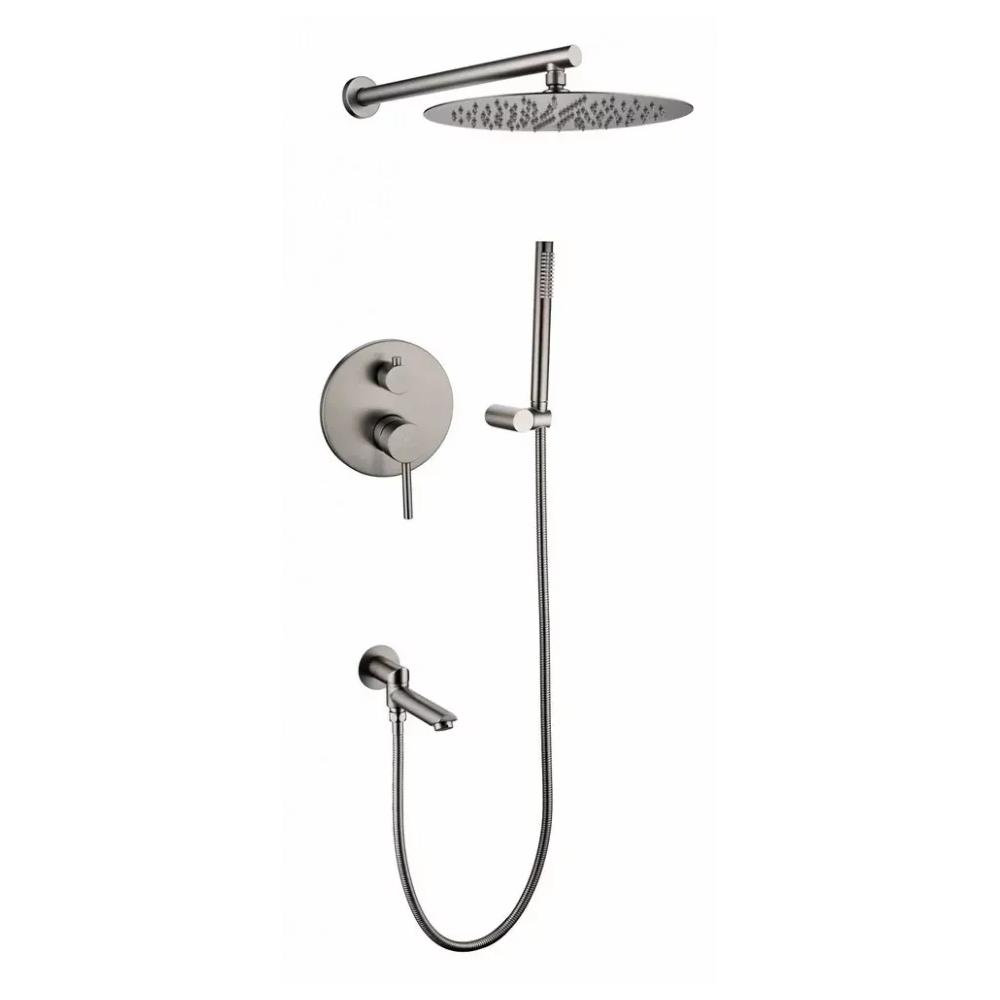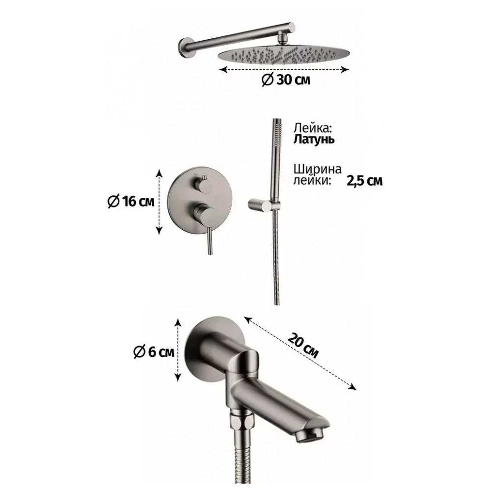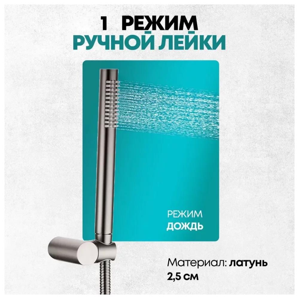 смеситель, внутренняя часть, шланговое подключение с изливом, держатель душевой лейки, лейка, душевой шланг, верхний душ с кронштейном