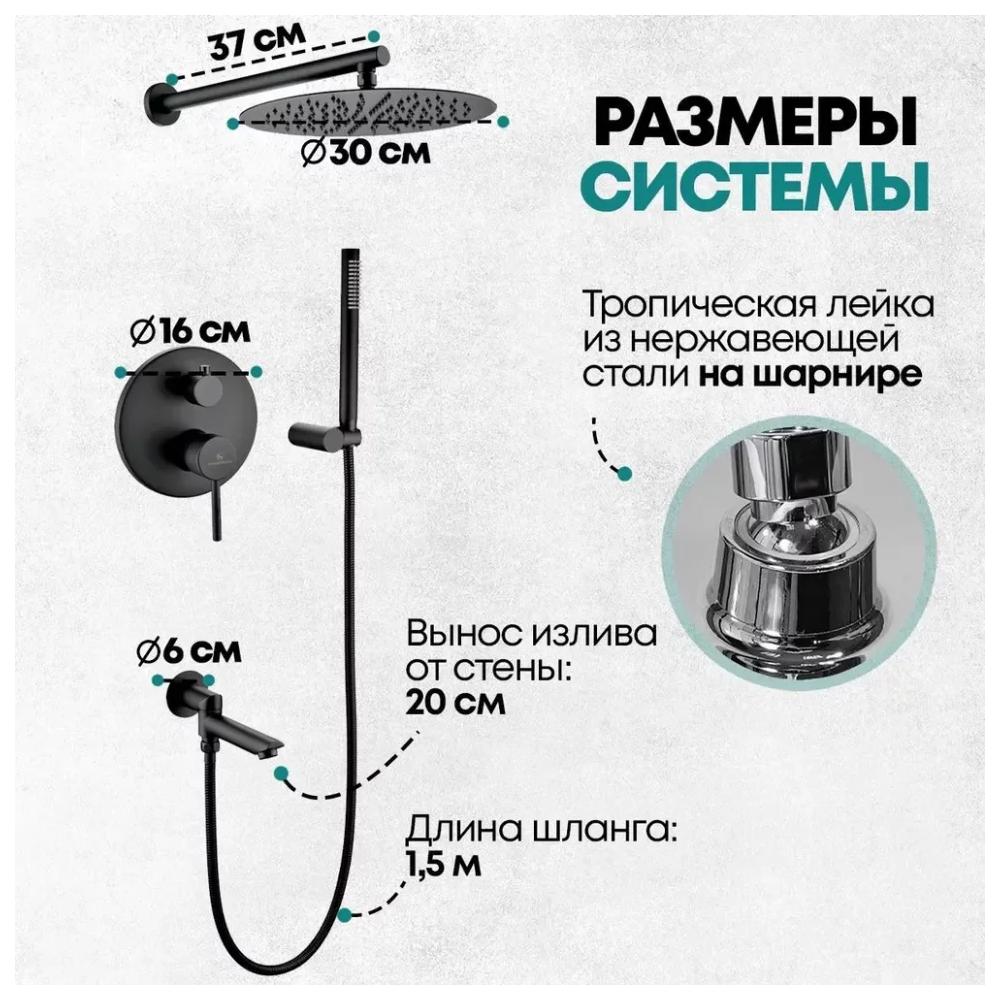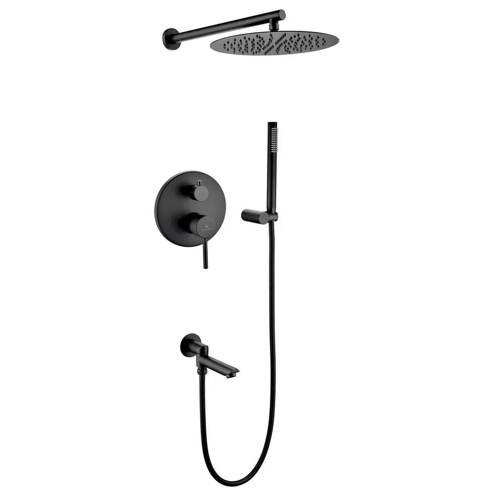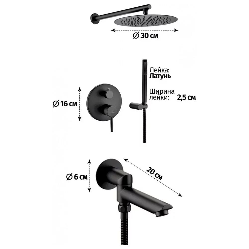 смеситель, внутренняя часть, шланговое подключение с изливом, держатель душевой лейки, лейка, душевой шланг, верхний душ с кронштейном