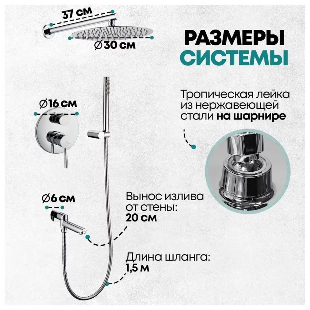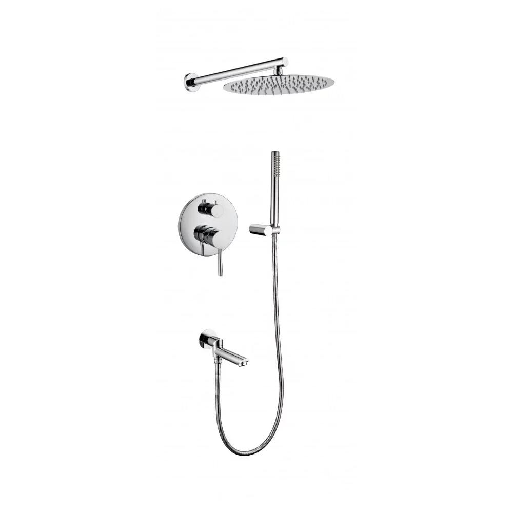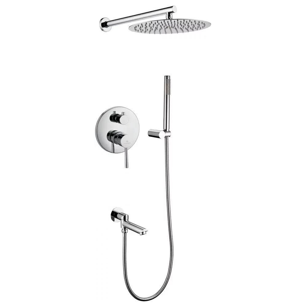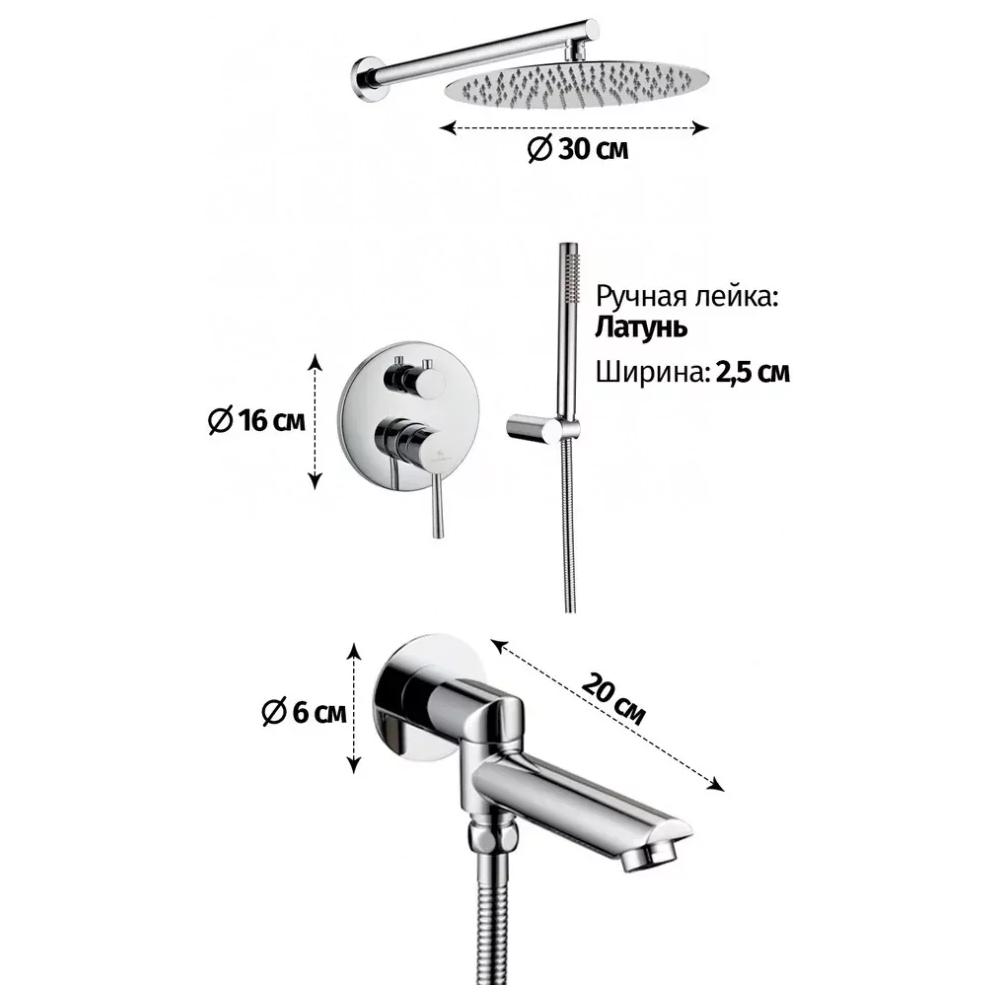 смеситель, внутренняя часть, шланговое подключение с изливом, держатель душевой лейки, лейка, душевой шланг, верхний душ с кронштейном