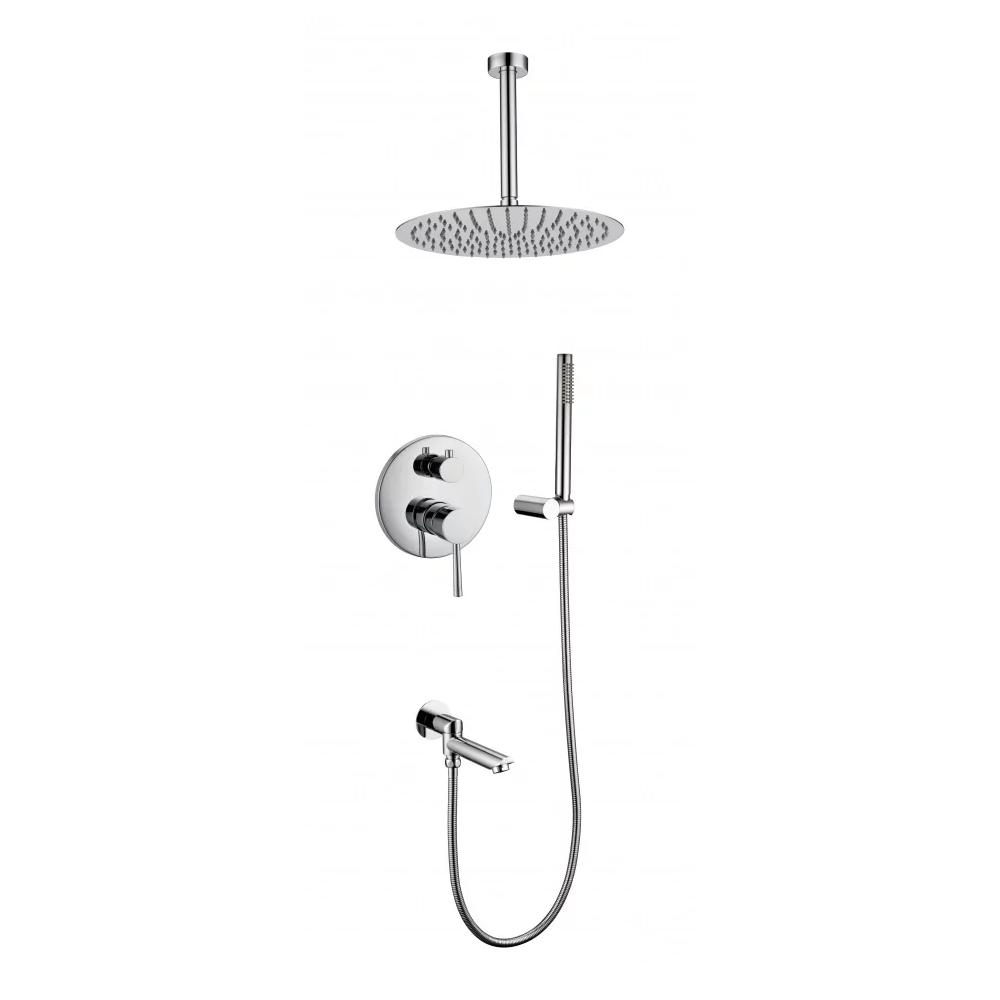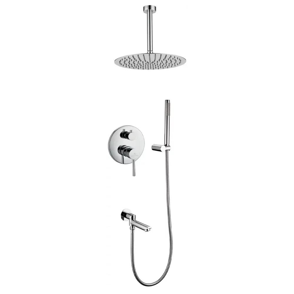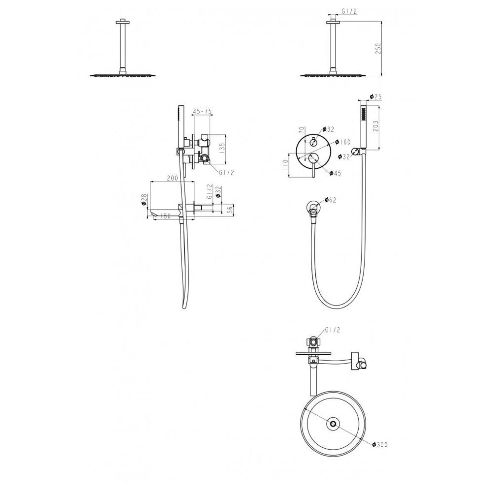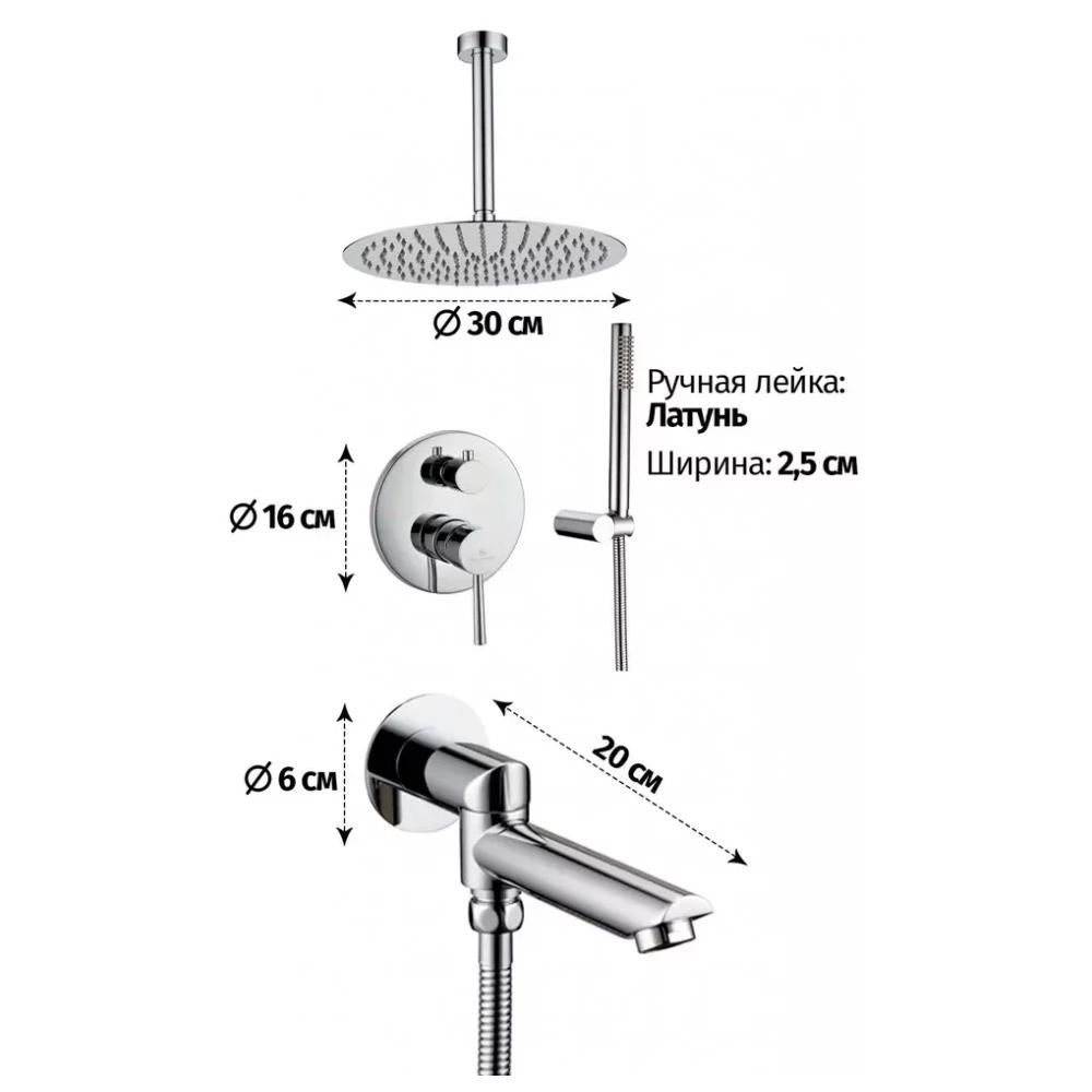смеситель, внутренняя часть, шланговое подключение с изливом, держатель душевой лейки, лейка, душевой шланг, верхний душ с кронштейном