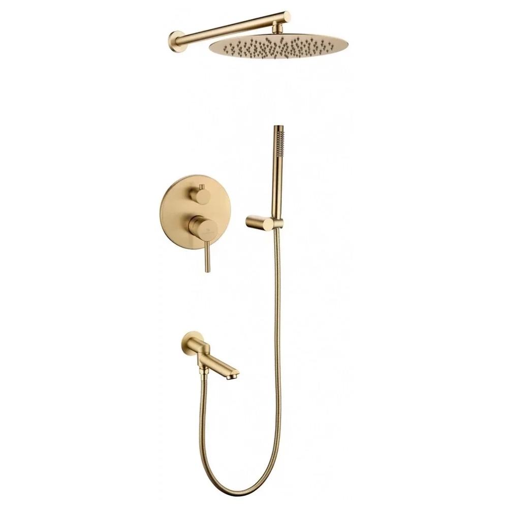 смеситель, внутренняя часть, шланговое подключение с изливом, держатель душевой лейки, лейка, душевой шланг, верхний душ с кронштейном