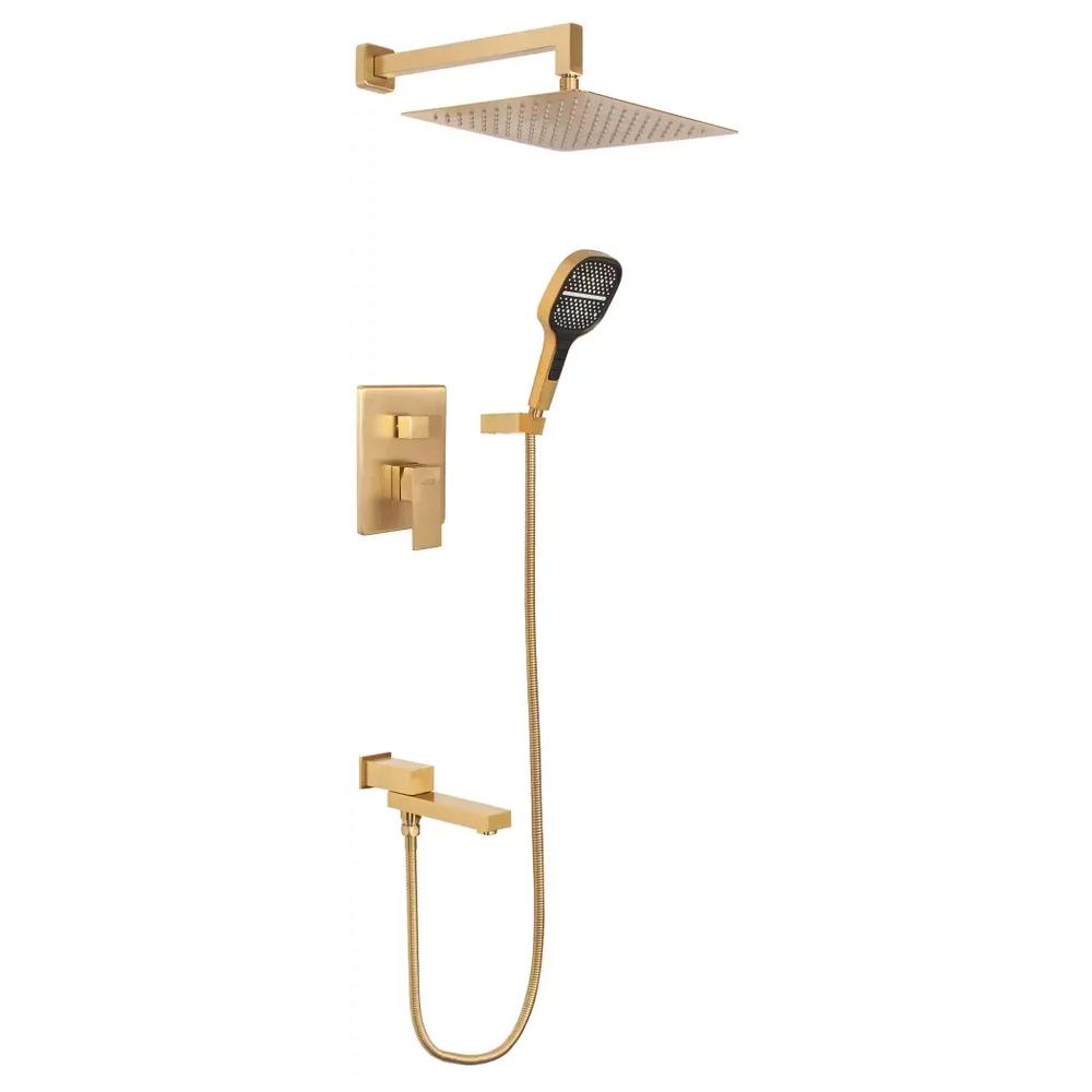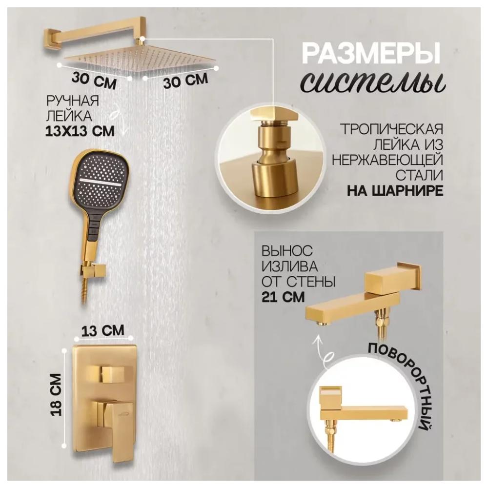 смеситель, внутренняя часть, шланговое подключение с изливом, держатель душевой лейки, лейка, душевой шланг, верхний душ с кронштейном