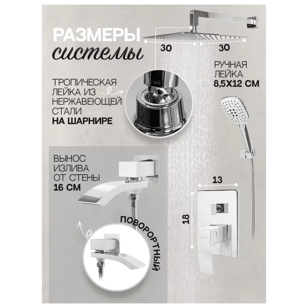 смеситель, внутренняя часть, шланговое подключение с изливом, держатель душевой лейки, лейка, душевой шланг, верхний душ с кронштейном