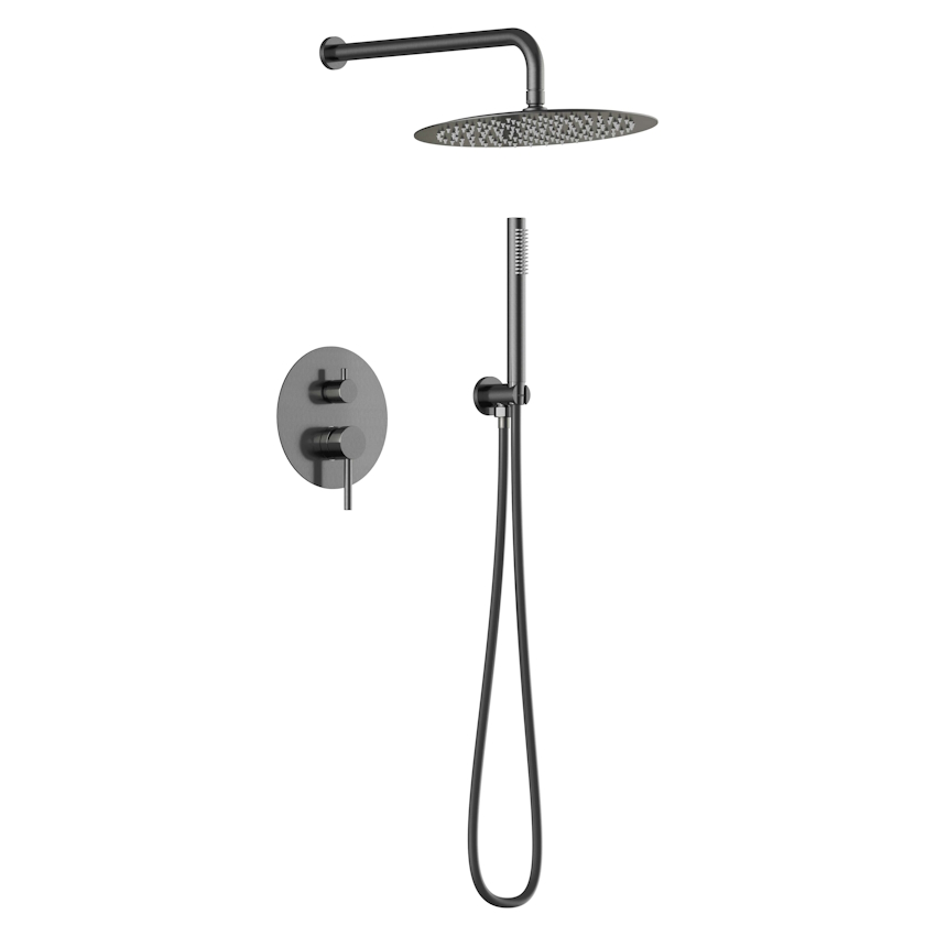 смеситель, внутренняя часть, шланговое подключение с держателем лейки, душевой шланг, верхний душ с кронштейном