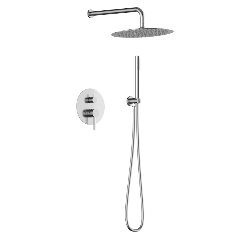 смеситель, внутренняя часть, шланговое подключение с держателем лейки, душевой шланг, верхний душ с кронштейном