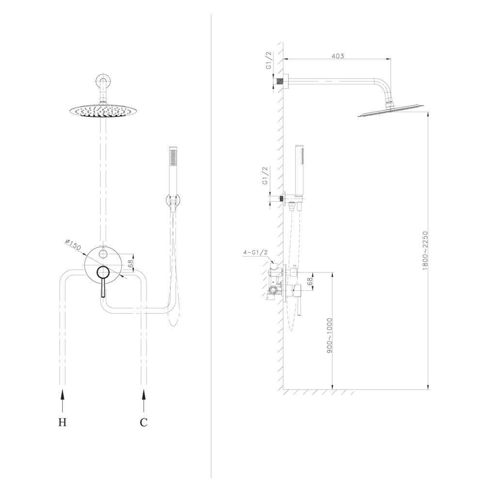 смеситель, внутренняя часть, кронштейн верхнего душа, шланговое подключение, верхний душ, душевая лейка, шланг