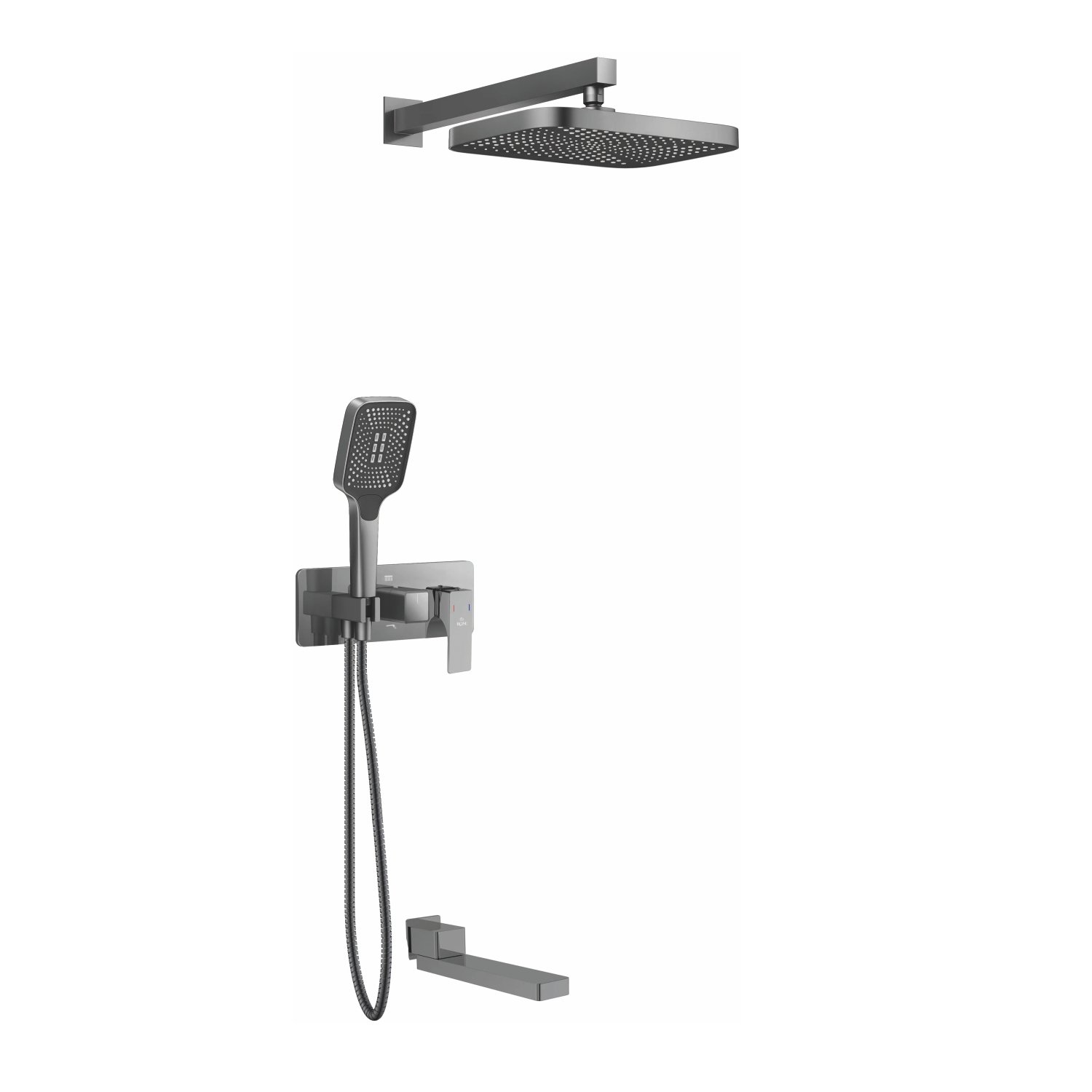 смеситель, верхний душ, кронштейн верхнего душа, шланговое подключение с держателем душевой лейки, душевая лейка, шланг, излив