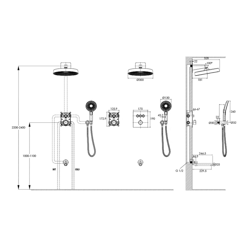 смеситель для душа, верхний душ, ручной душ, шланг для ручного душа, крепления, держатель
