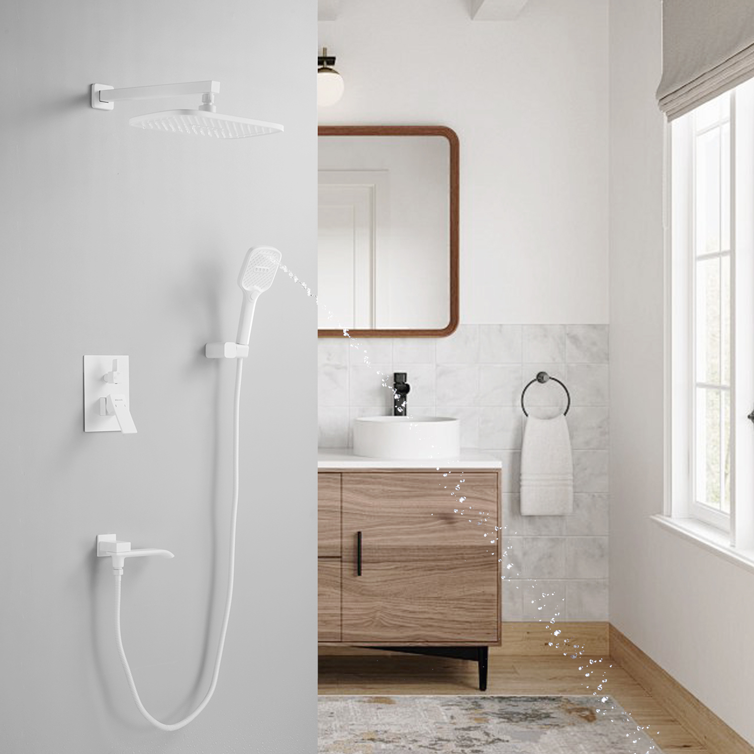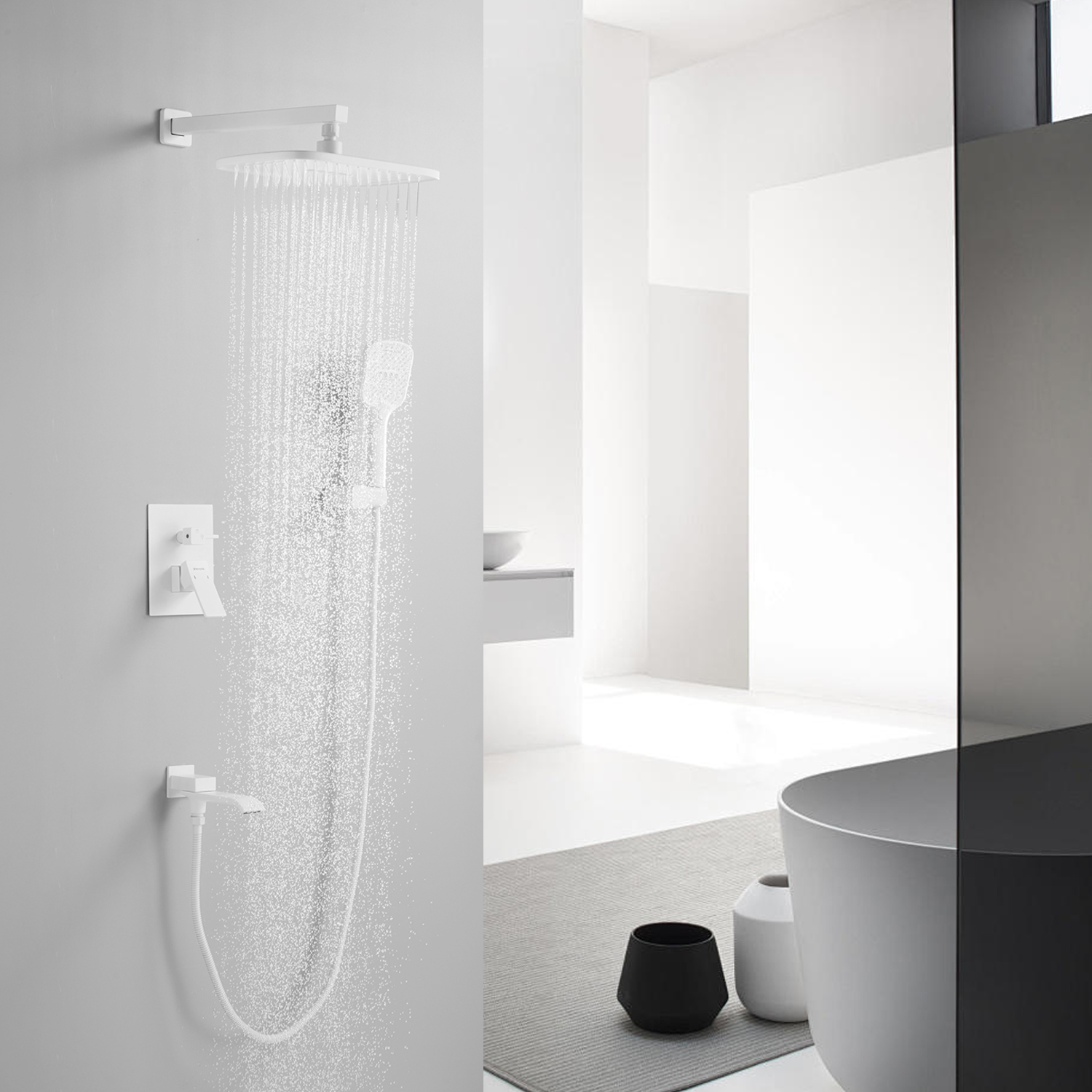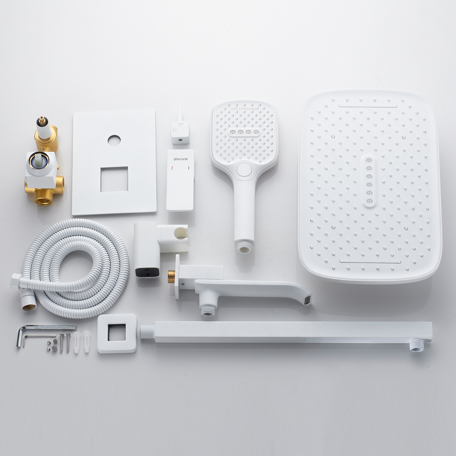смеситель, внутренняя часть, шланговое подключение с изливом, верхний душ с настенным кронштейном, душевая лейка, настенный держатель лейки, душевой шланг