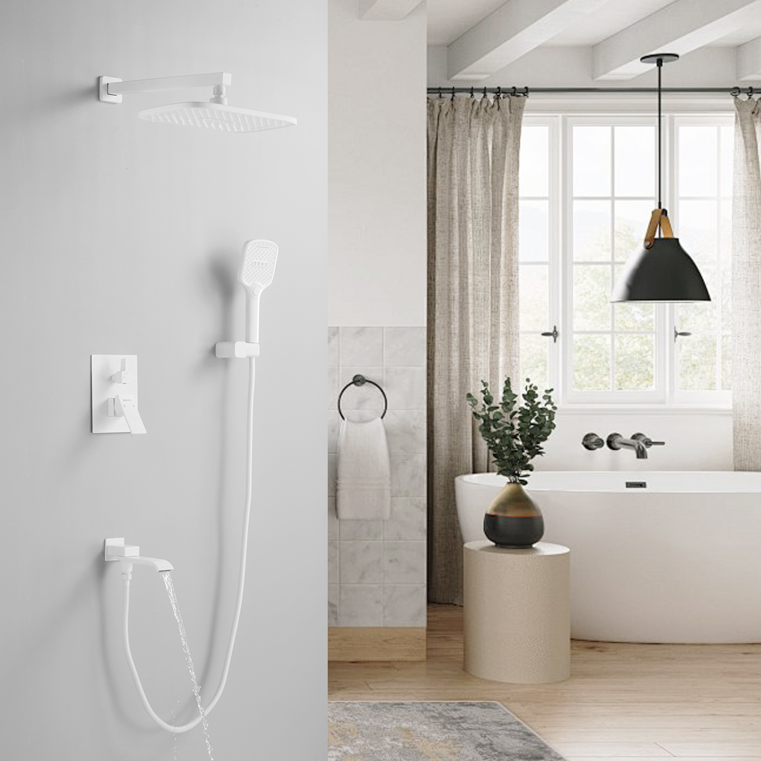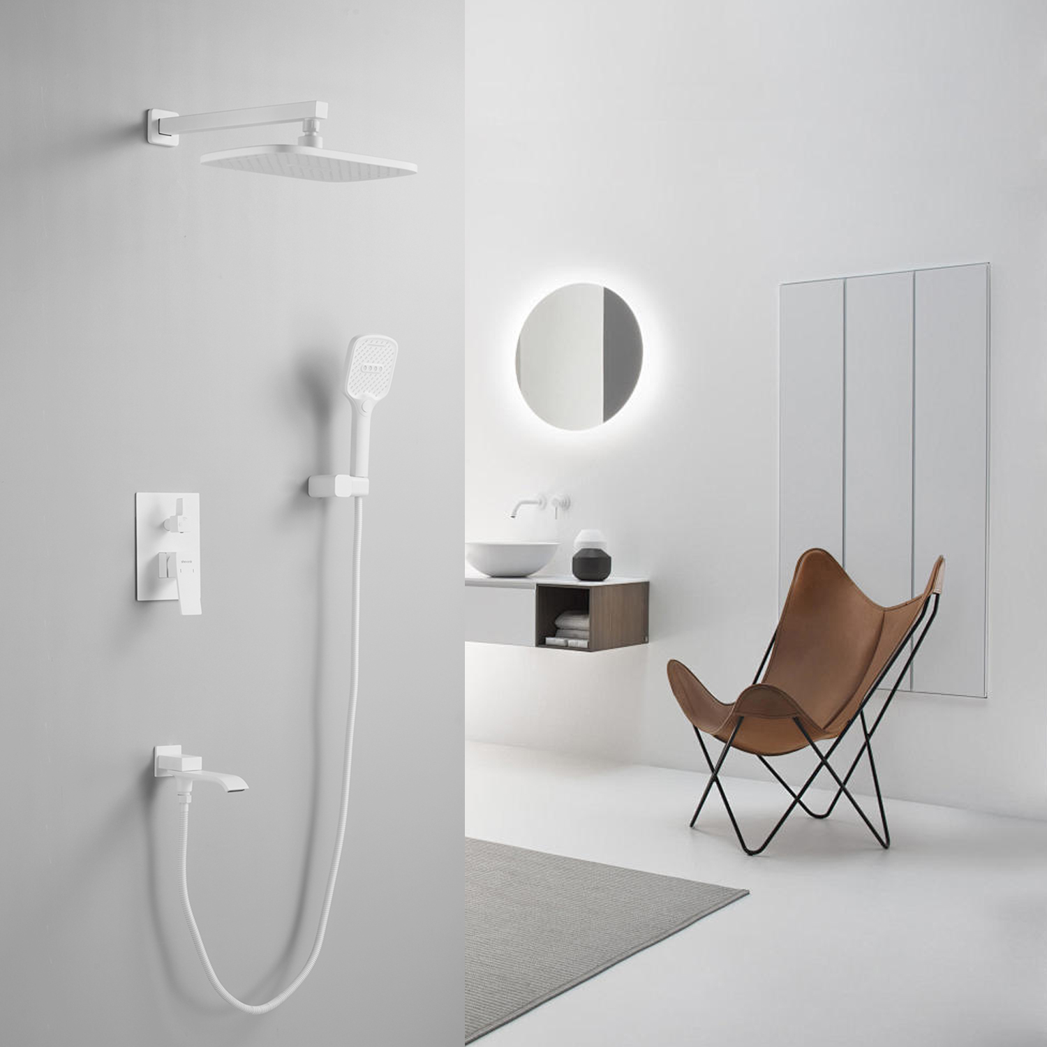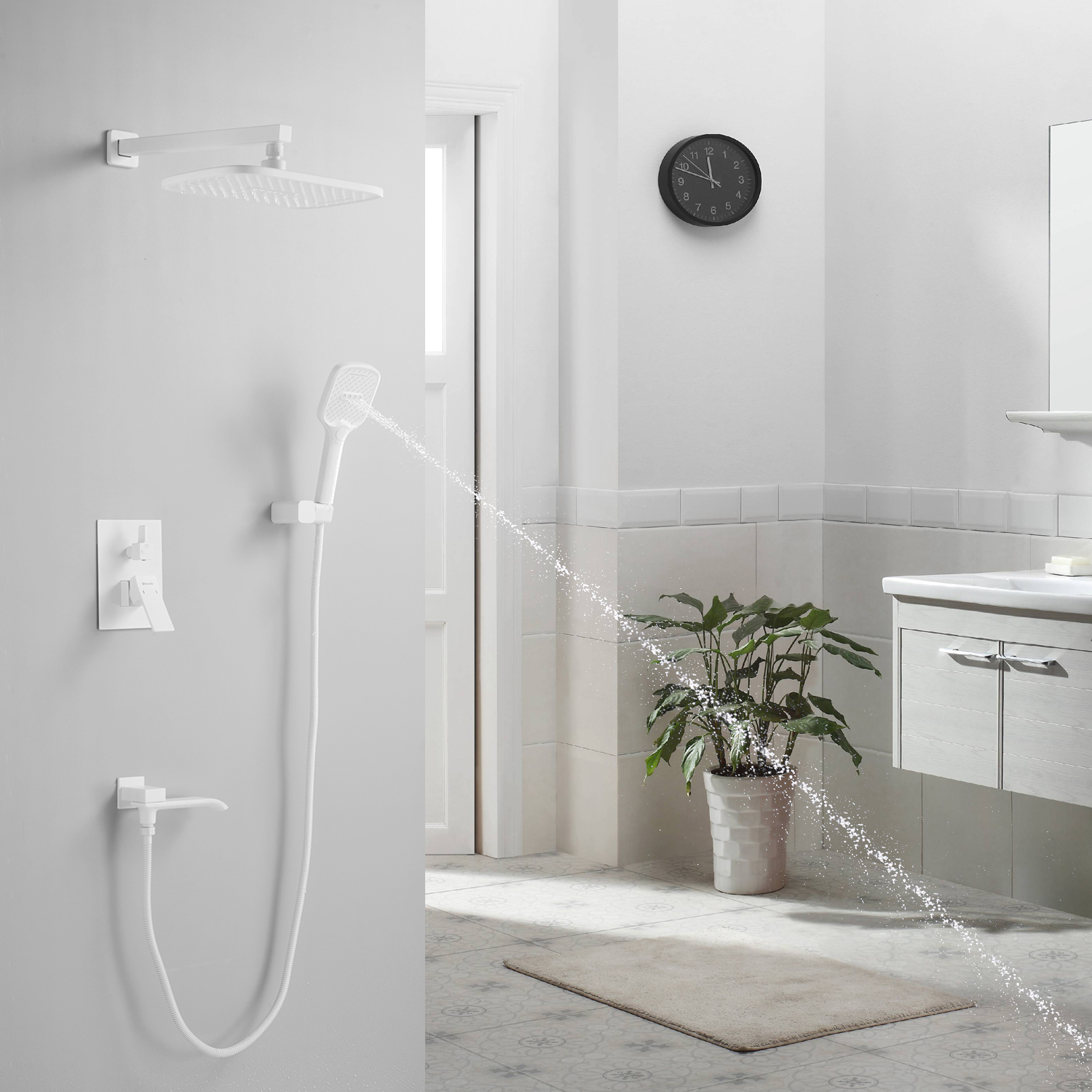 смеситель, внутренняя часть, шланговое подключение с изливом, верхний душ с настенным кронштейном, душевая лейка, настенный держатель лейки, душевой шланг