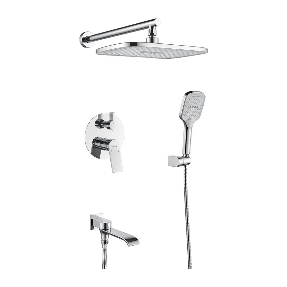 смеситель, внутренняя часть, шланговое подключение с изливом, верхний душ с настенным кронштейном, душевая лейка, настенный держатель лейки, душевой шланг