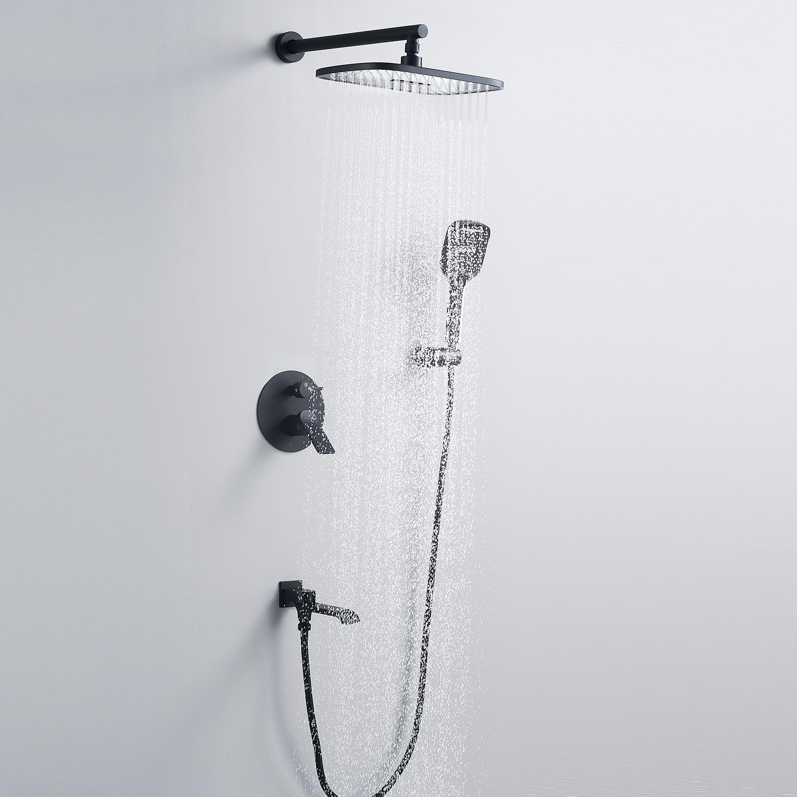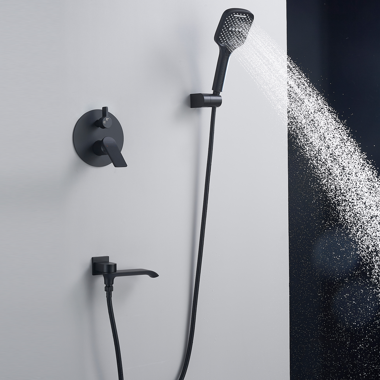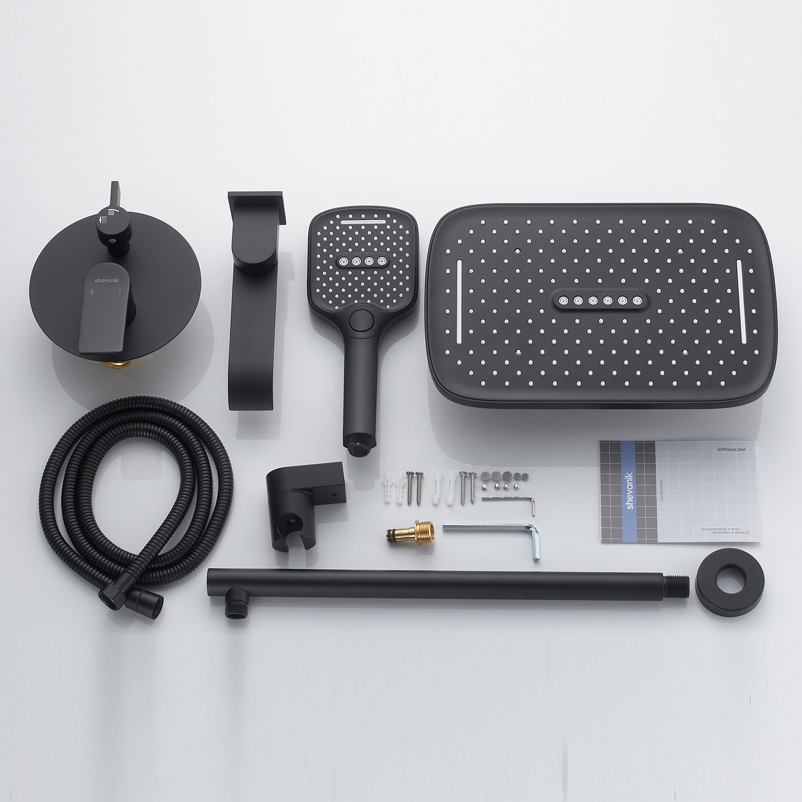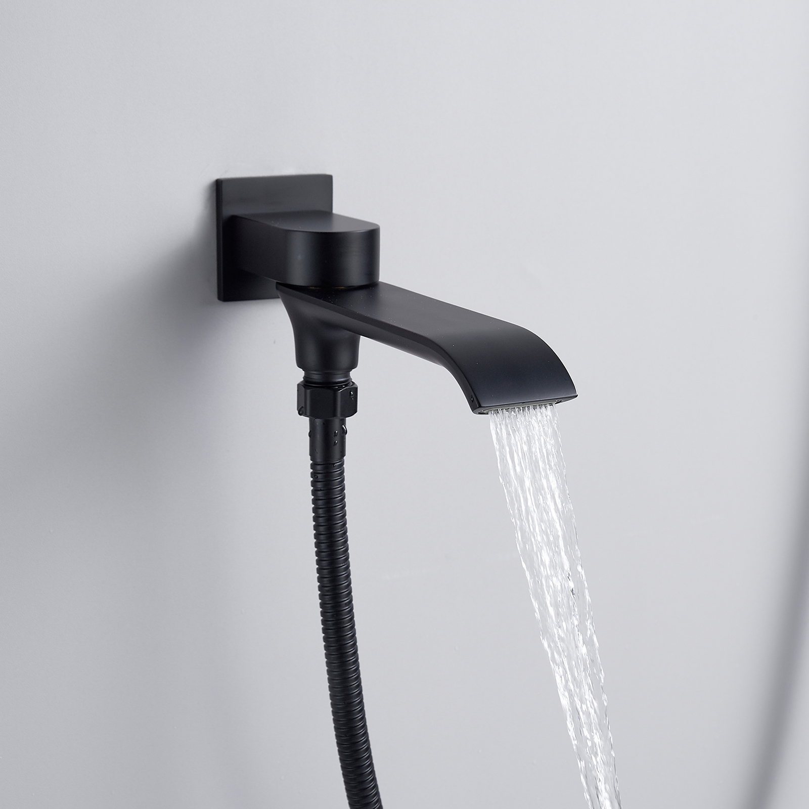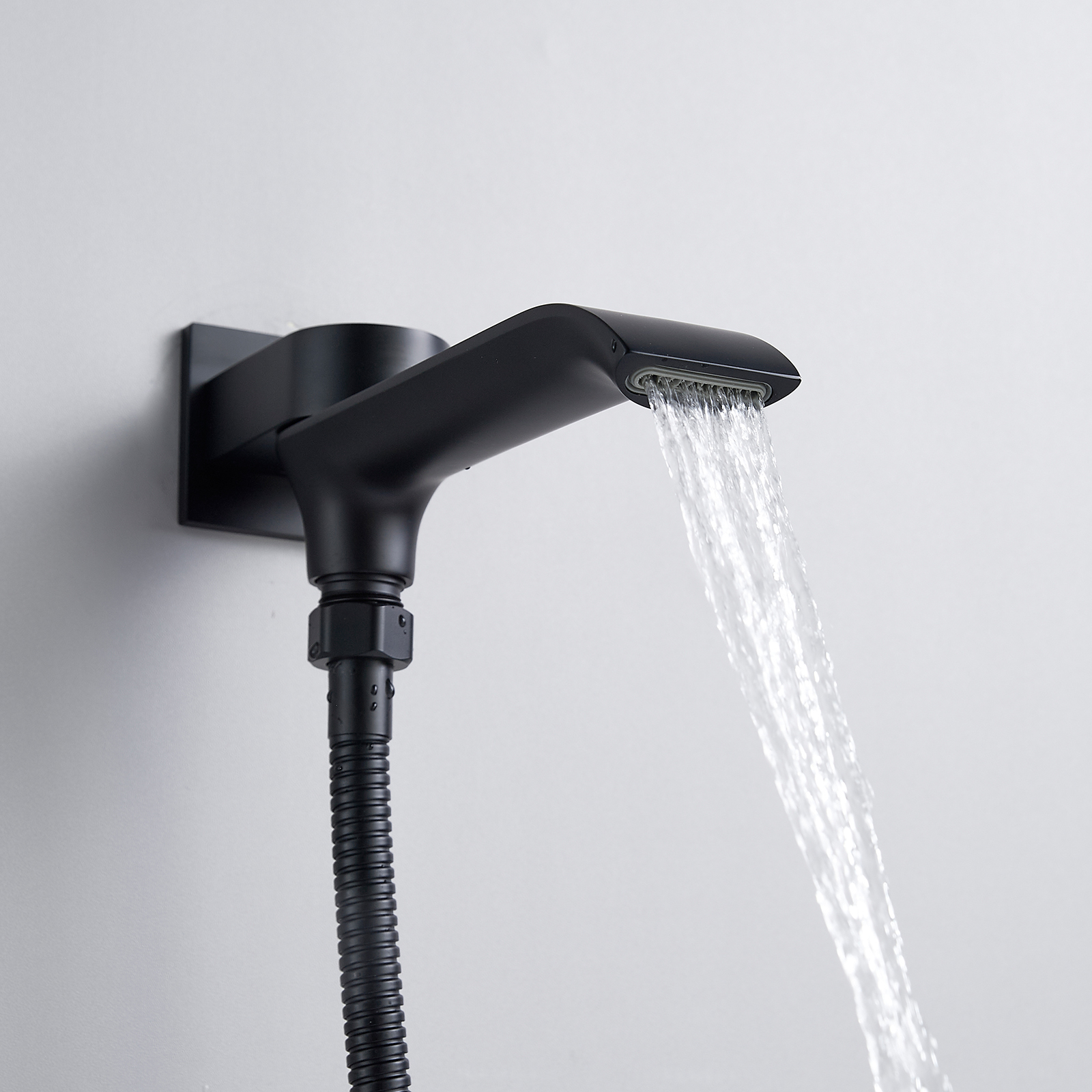 смеситель, внутренняя часть, шланговое подключение с изливом, верхний душ с настенным кронштейном, душевая лейка, настенный держатель лейки, душевой шланг