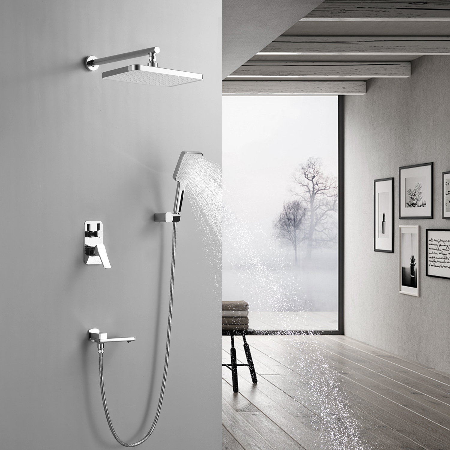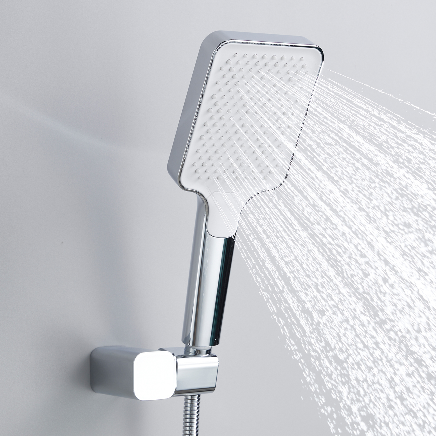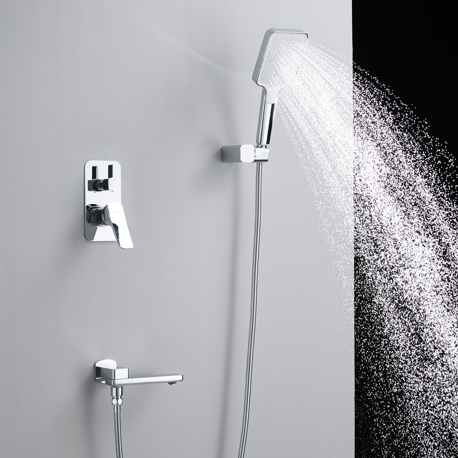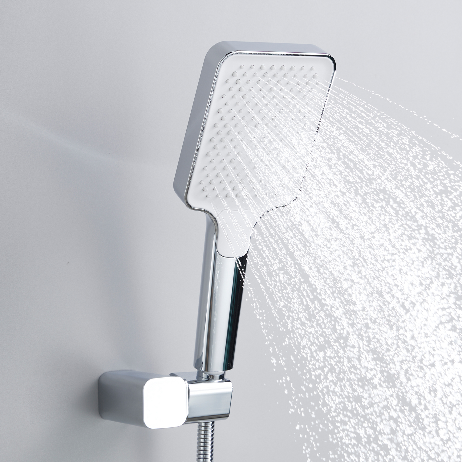 смеситель, внутренняя часть, шланговое подключение с изливом, верхний душ с настенным кронштейном, душевая лейка, настенный держатель лейки, душевой шланг