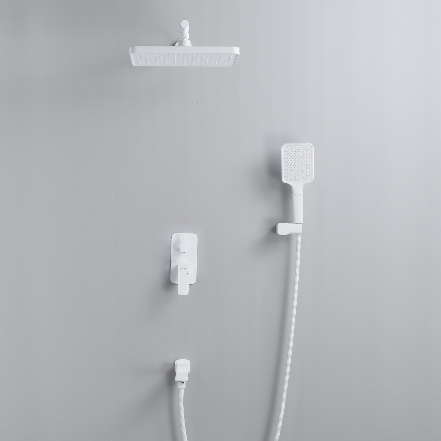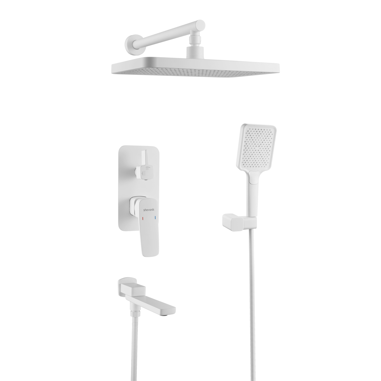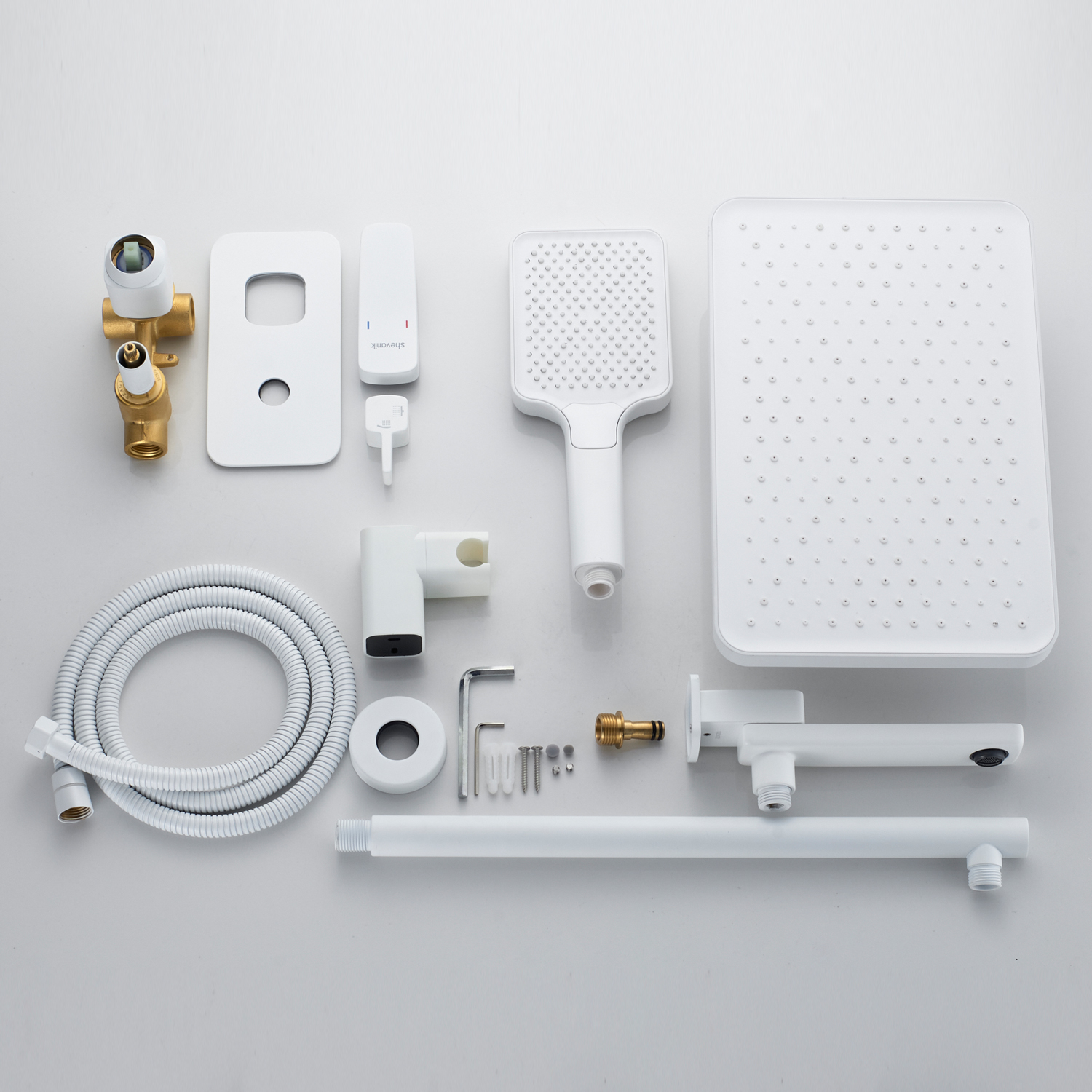 смеситель, внутренняя часть, шланговое подключение с изливом, верхний душ с настенным кронштейном, душевая лейка, настенный держатель лейки, душевой шланг