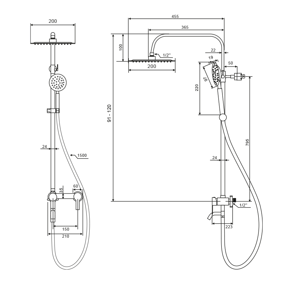 смеситель, верхний душ, штанга, лейка, шланг, эксцентрики, декоративные чашки